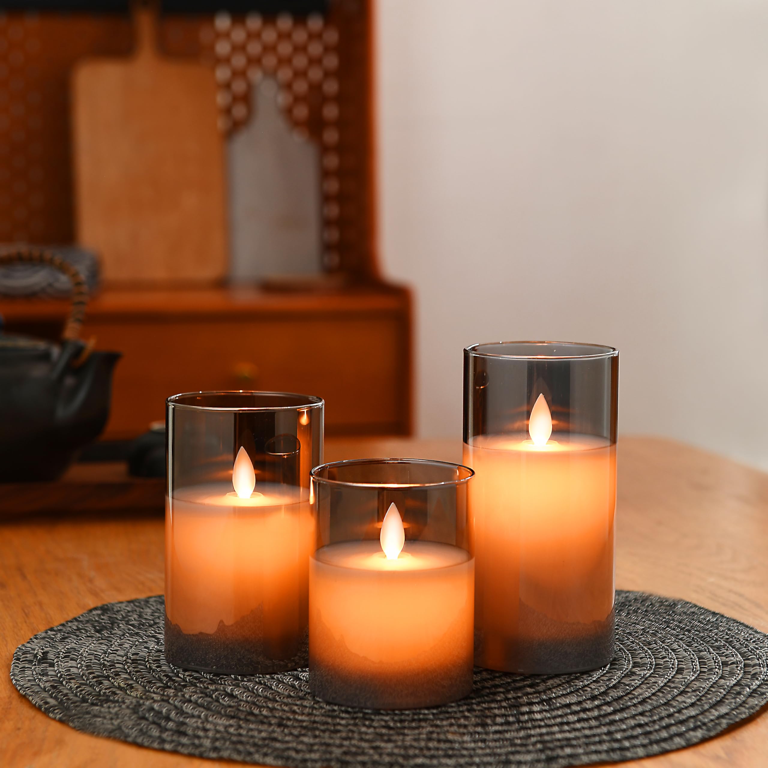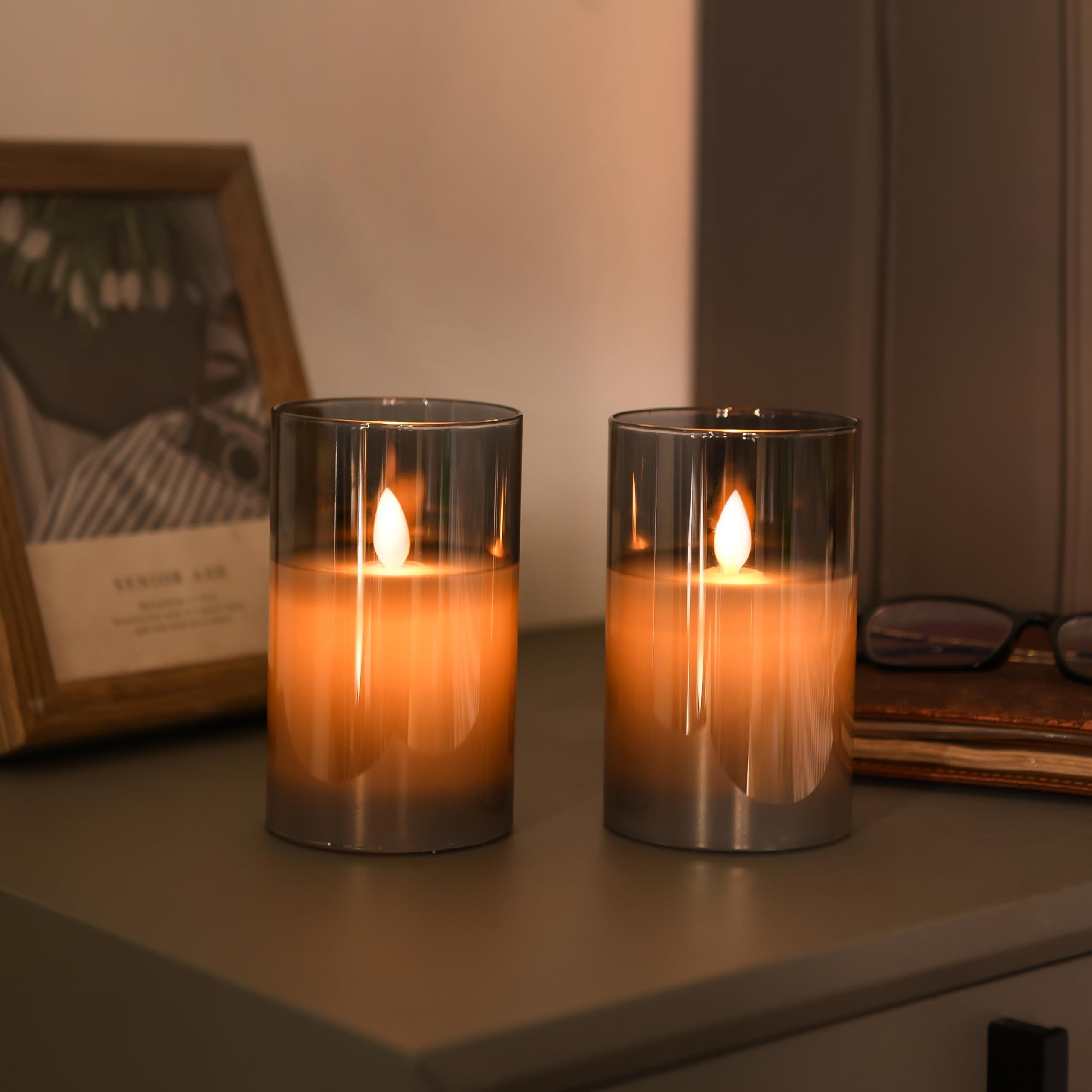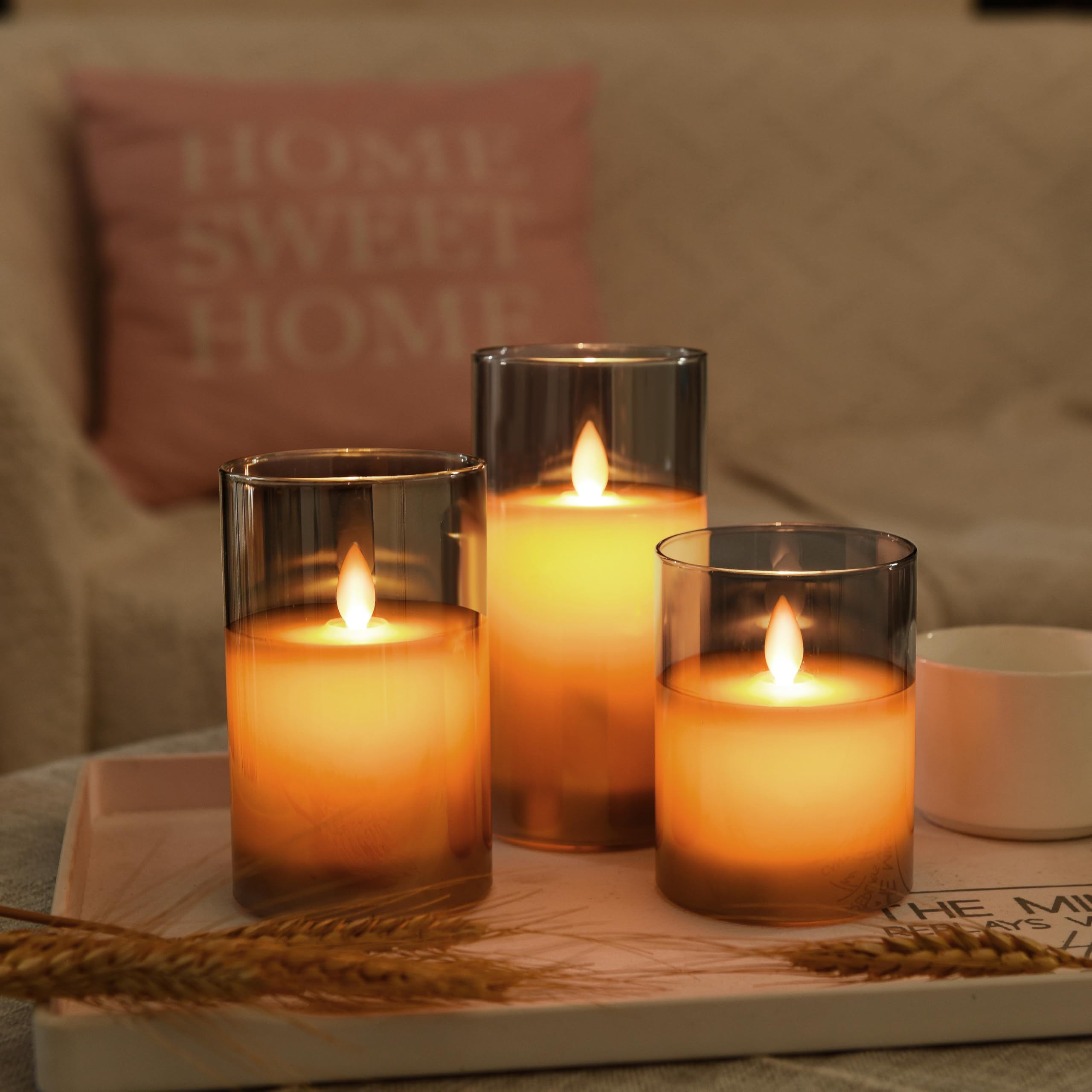 AnnTec LEDキャンドルライト 【3点セット】 led ろうそく グレー ブラック ロウソク 電池式 LEDキャンドル 専用リモコン付き 自動消灯タイマー 明るさ調整 本物の炎のようにゆらめく 暖色光 火を使わない ゆらゆら揺れる 安全 省エネ