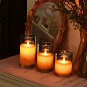 【セット内容】 LEDキャンドル×3本 サイズ:L(直径7.5cm×高さ15cm)、M (直径7.5cm×高さ12.5cm)、S(直径7.5cm×高さ10cm)単3電池(別売り) リモコン用電池:ボタン電池1個(付属) 【注意事項】LEDランプの寿命は50,000時間以上です。次のようなヒントにもっと注意を払う限り、それは再利用可能です。 ※このろうそくは本物のワックスで作られており、可燃性です。このろうそくに火をつけようとしないでください。 ※直射日光を避け、熱源から遠ざけ、極端な温度にしないでください。ろうそくが柔らかくなったり溶けたりすることがあります。※防水性がないため、水のかかる恐れがある場所では、ご利用にならないでください。