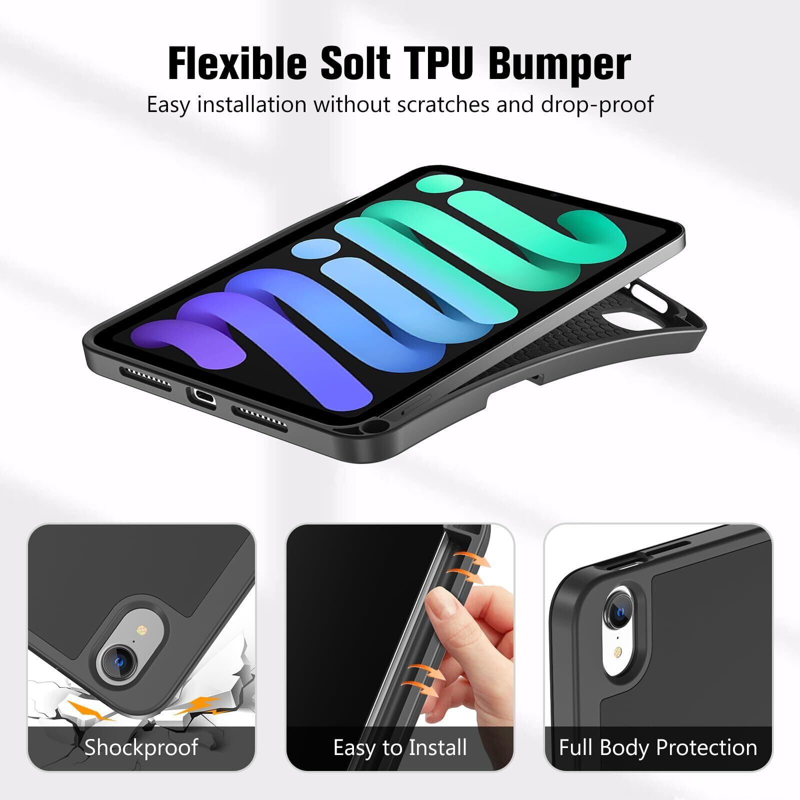 【数量限定】ProCase iPad Mini A17 Pro 第7世代 (2024発売) Mini6 第6世代 (2021発売) ケース 8.3インチ ペンホルダー付き オートスリープ/ウェイク機能 耐衝撃 三つ折りスタンド 適用機種:iPad Mini A17 Pro 第7世代 2024、iPad Mini 6世代 2021 - ブラック