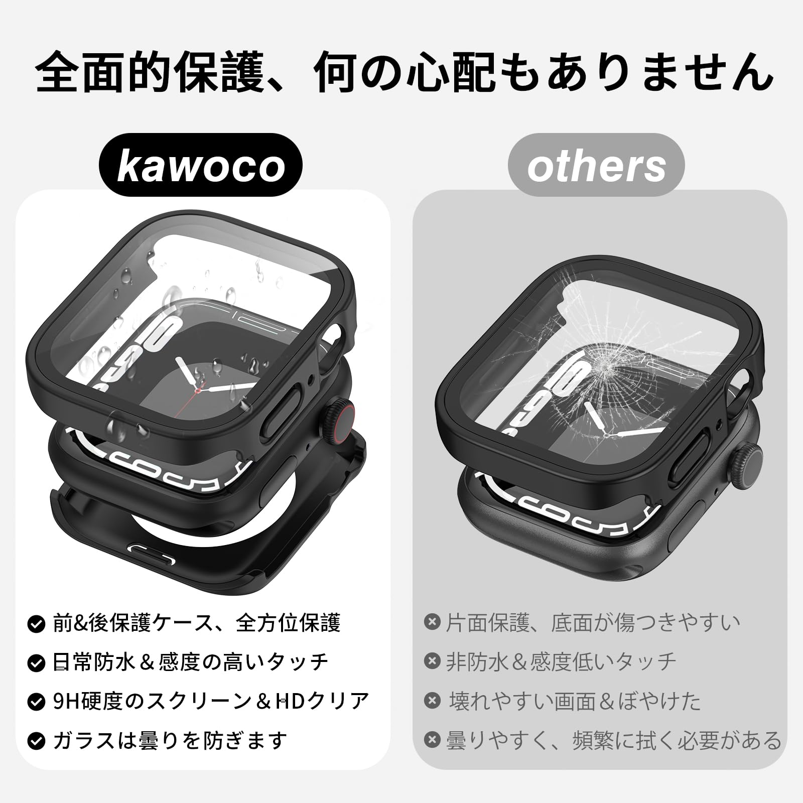 【2 in 1 全面保護】Kawocoアップルウォッチ二重保護ケースは、全方位的な保護に重点を置いています。一体型保護構造全体で、全面カバー型保護ケース、頑丈な背面カバー、9H強化ガラスフィルムから構成されています。全面カバー型保護ケースと背面カバーは、高硬度で耐久性のあるPC素材を採用し、優れた耐衝撃性と耐擦り傷性を実現し、あなたの貴重なApple Watchがさまざまな角度からのダメージを防ぎます。表面保護スクリーンは、超薄型の9H強化ガラスフィルムを採用し、高透過性、高感度の3Dタッチ操作が可能で、画面操作に影響を与えません、裸で使用しているのと、たいして変わらないタッチの反応の良さ。