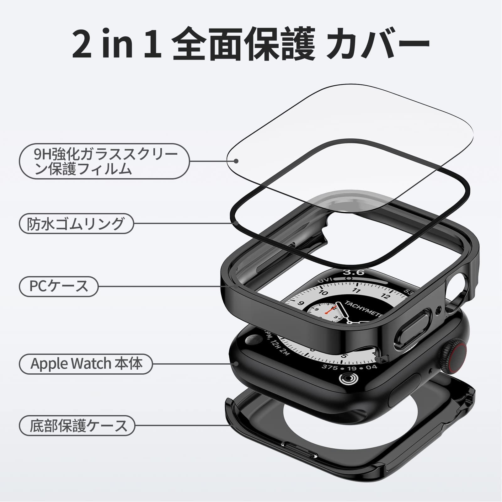 【フルカバー保護】Kawoco アップルウォッチ 防水 カバー Apple Watch SE Series 6 5 4 対応 40mm ケース 2 in 1 前後の保護 耐衝撃 iWatch 一体型 ケース 40 mm マットのブラック