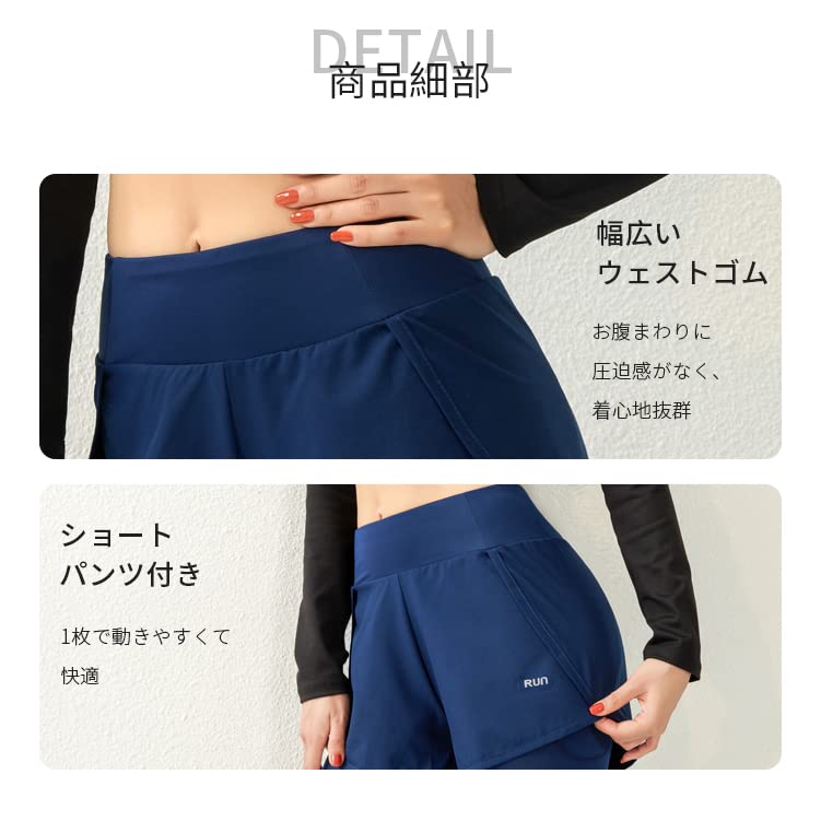 【パンツ付き一体型】スポーツ・フィットネス・ヨガに最適なショートパンツ一体型レギンスです。一体型なので重ね着やコーデを考える必要がなく、トップスを合わせるだけで簡単にトータルコーデが完成します。ショートパンツがヒップラインをカバーしてくれるので、ジムで運動をしたいけどおしりや太もも周り、生足は出したくないなんて方にもおすすめです。