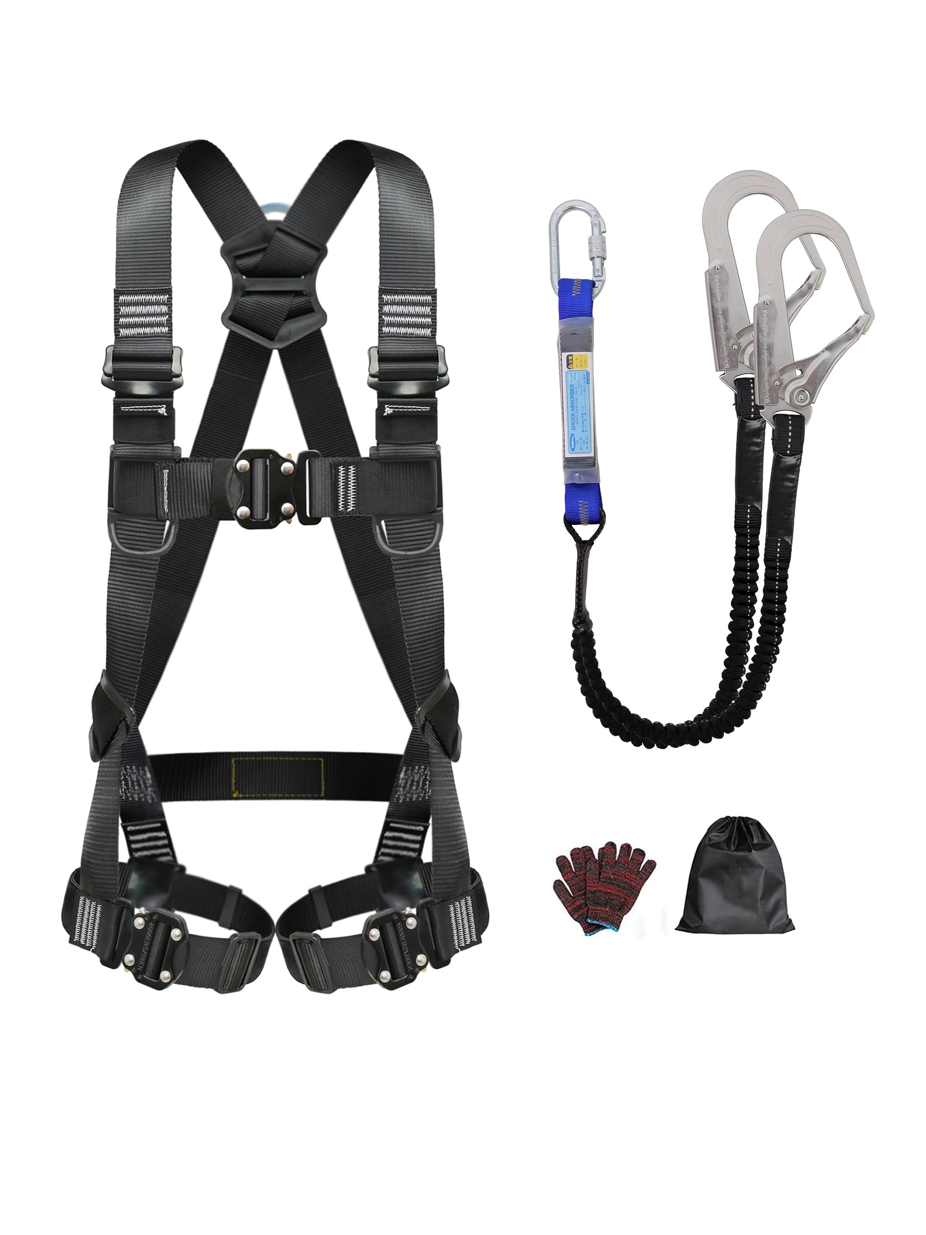 [winfull] 【新規格適合】フルハーネス安全帯 新規格 セット 墜落制止用器具 伸縮式ダブルランヤード ショックアブソーバー付き 安全落下全身保護キット ワンタッチバックル 簡単に着脱可能 建設 電力 高所作業用 日本語説明書 使用可能質量 100kg