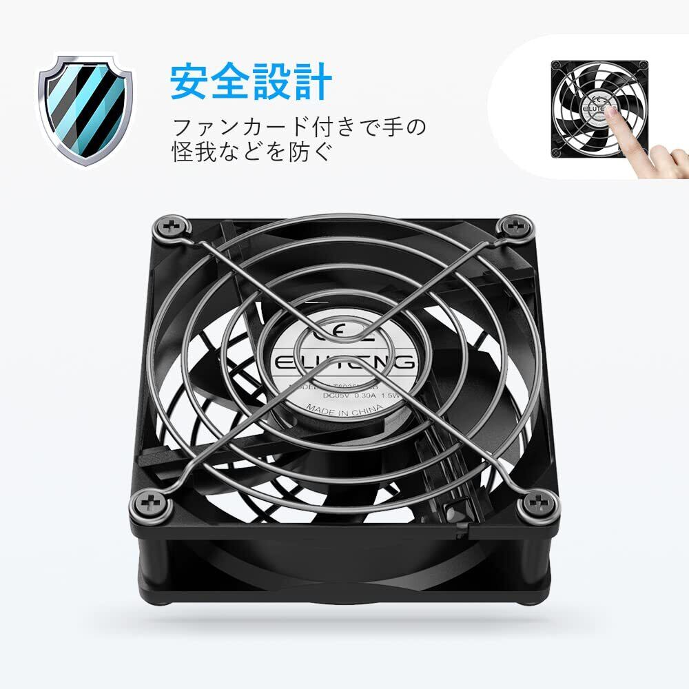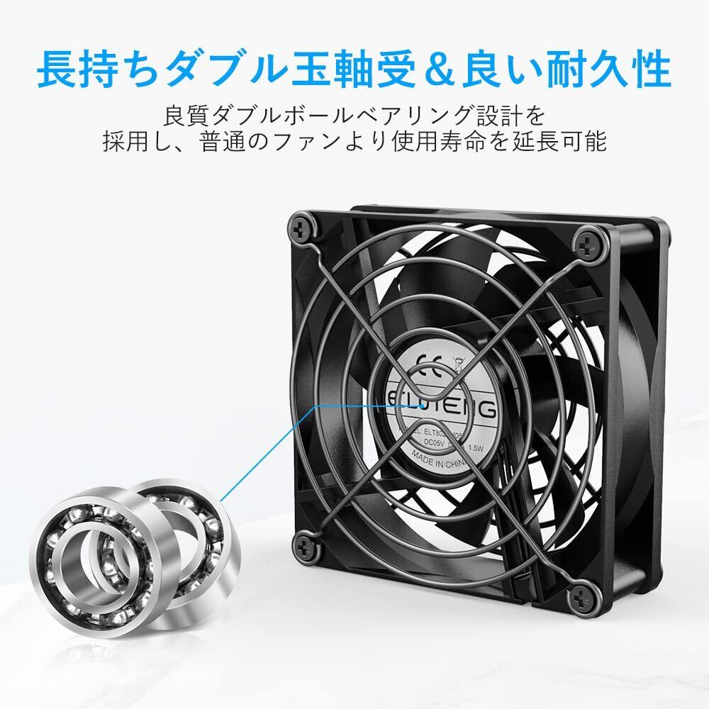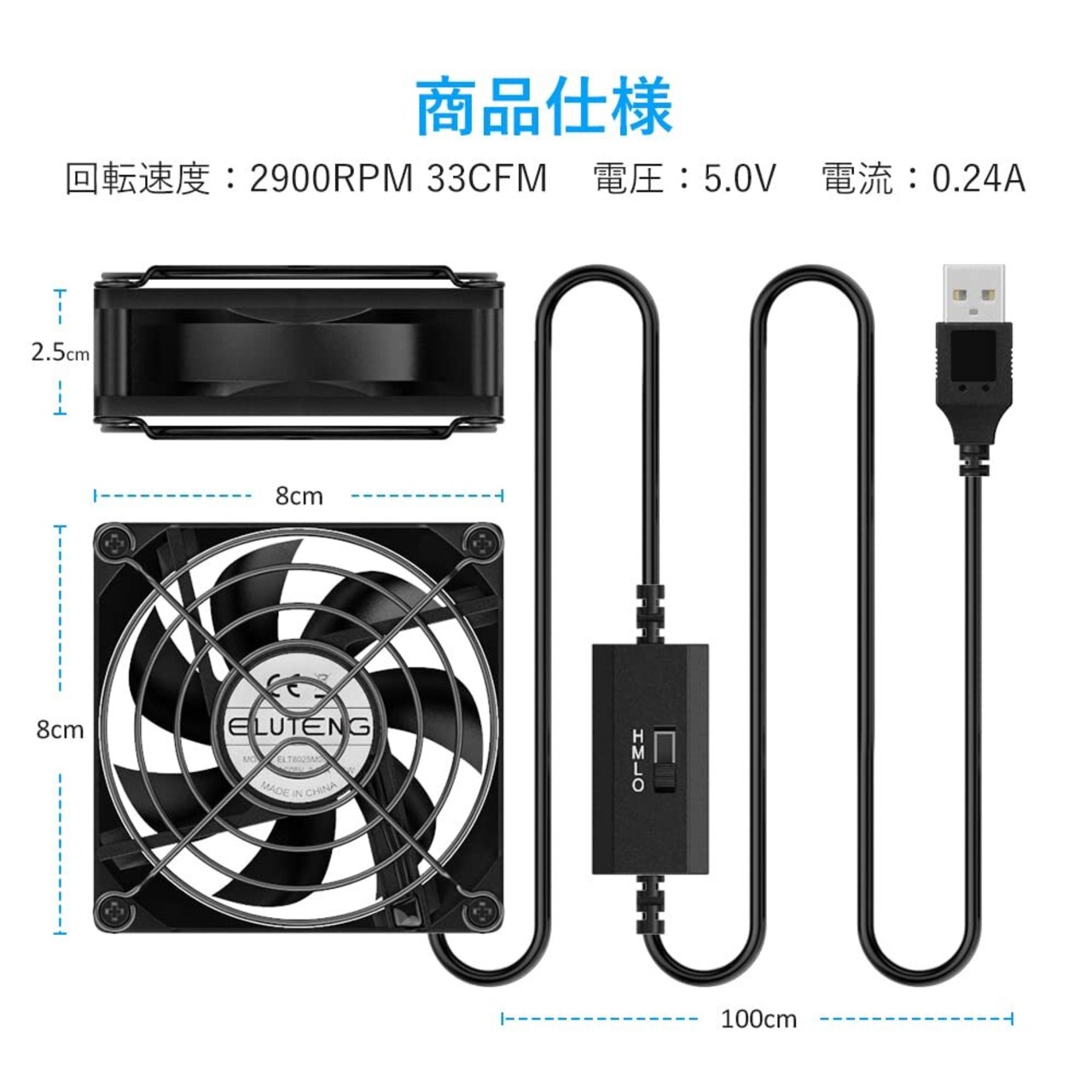 ELUTENG USBファン 8cm 強力冷却 3段風量調節可 5V 静音 小型 卓上 USB扇風機 80mm ファン 7枚羽根 サイレント PC 省エネ クーラー パソコン PS4 PS3 ゲーム機 ルーター TV Box クーリングに対応 USB Cooling fan 8cm