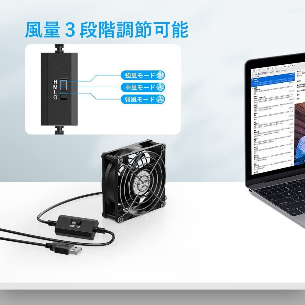 【幅広い実用性】80mm USBファンはパソコン、ルーター、HDDなどの冷却装置だけでなく、AV機器やゲーム機にも適しています。この静音USBファンの本体の厚さは2.5cmで金属製フレームを付けると、厚さは3.5cmになる。サイズが小さいから、狭いとことに最適!