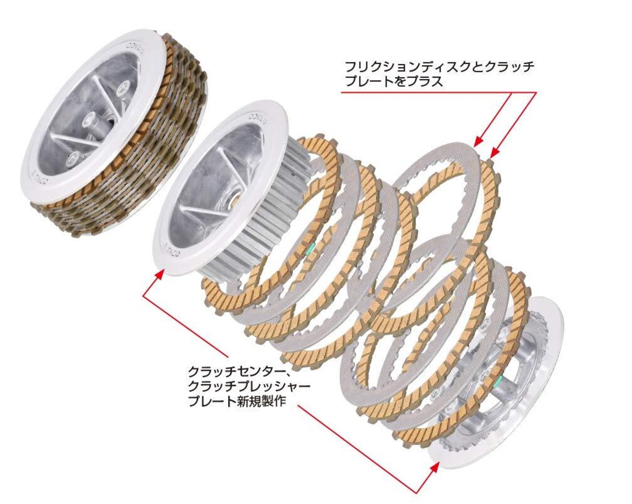 ノーマルクラッチのディスク数を増やす事でクラッチ容量が向上。