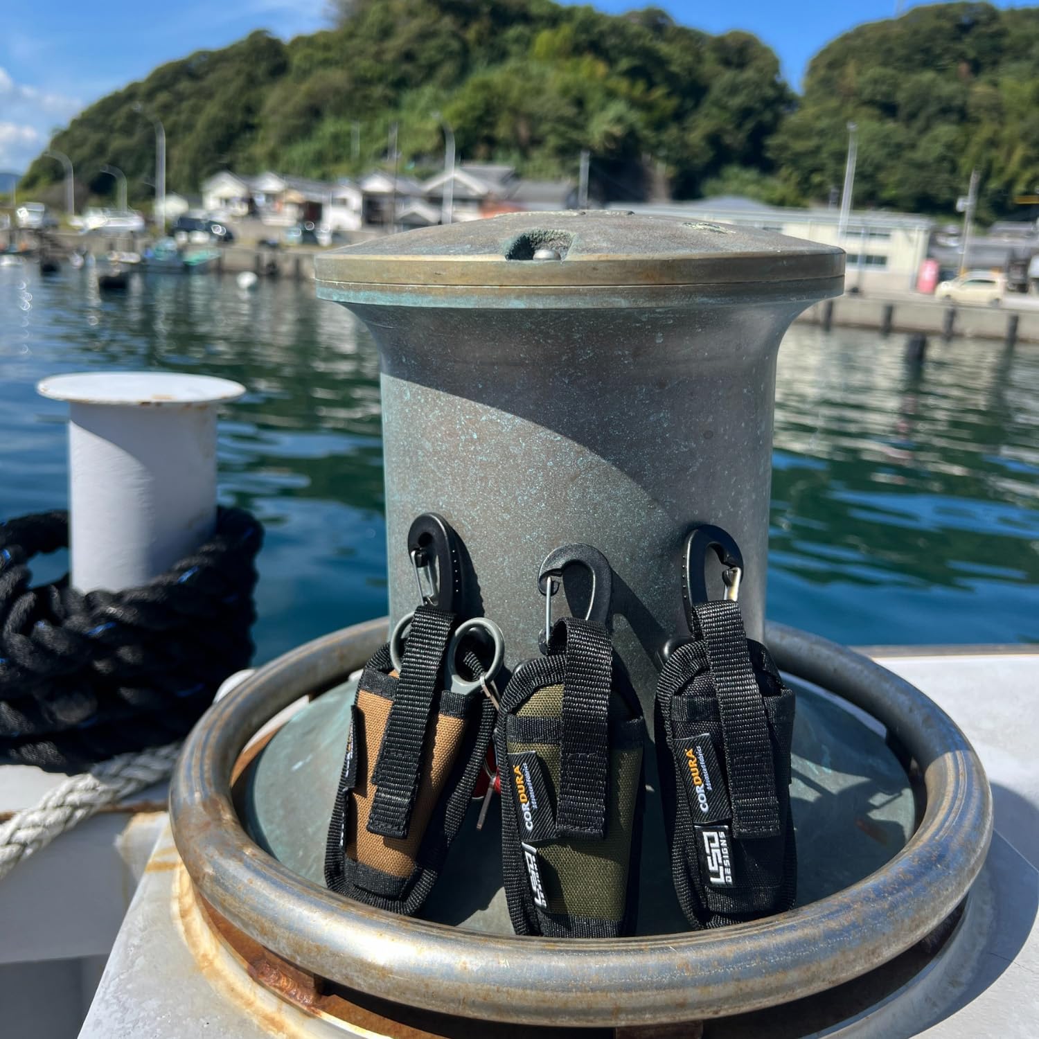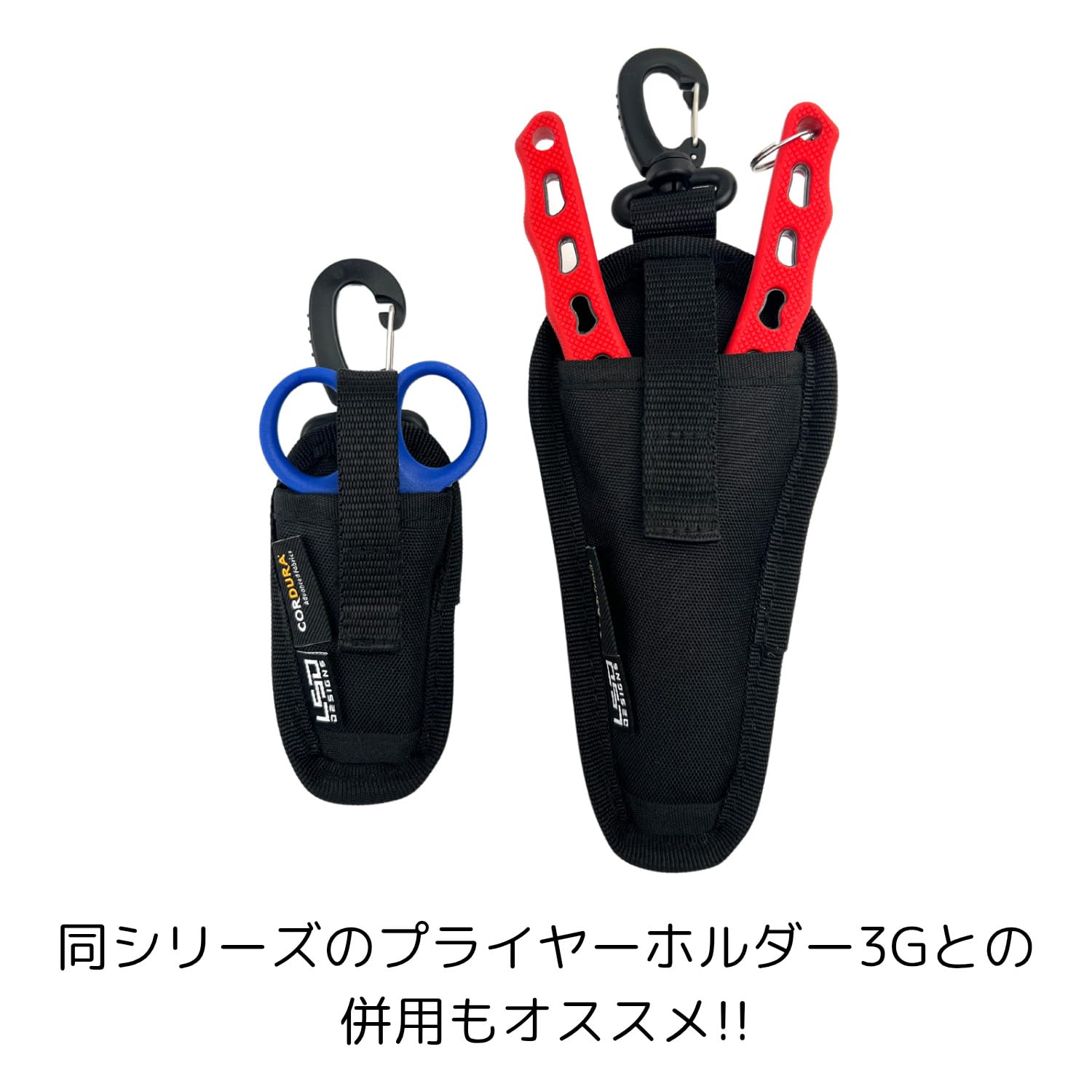 シリーズ名:【ミニシザーホルダー】……小型のハサミや、小型のプライヤーなどを手返しよく使用ができるミニシザーホルダー。コーデュラ素材で耐久性を増し、バッグの側面や、ライフジャケットのベルトなどに装着できます。