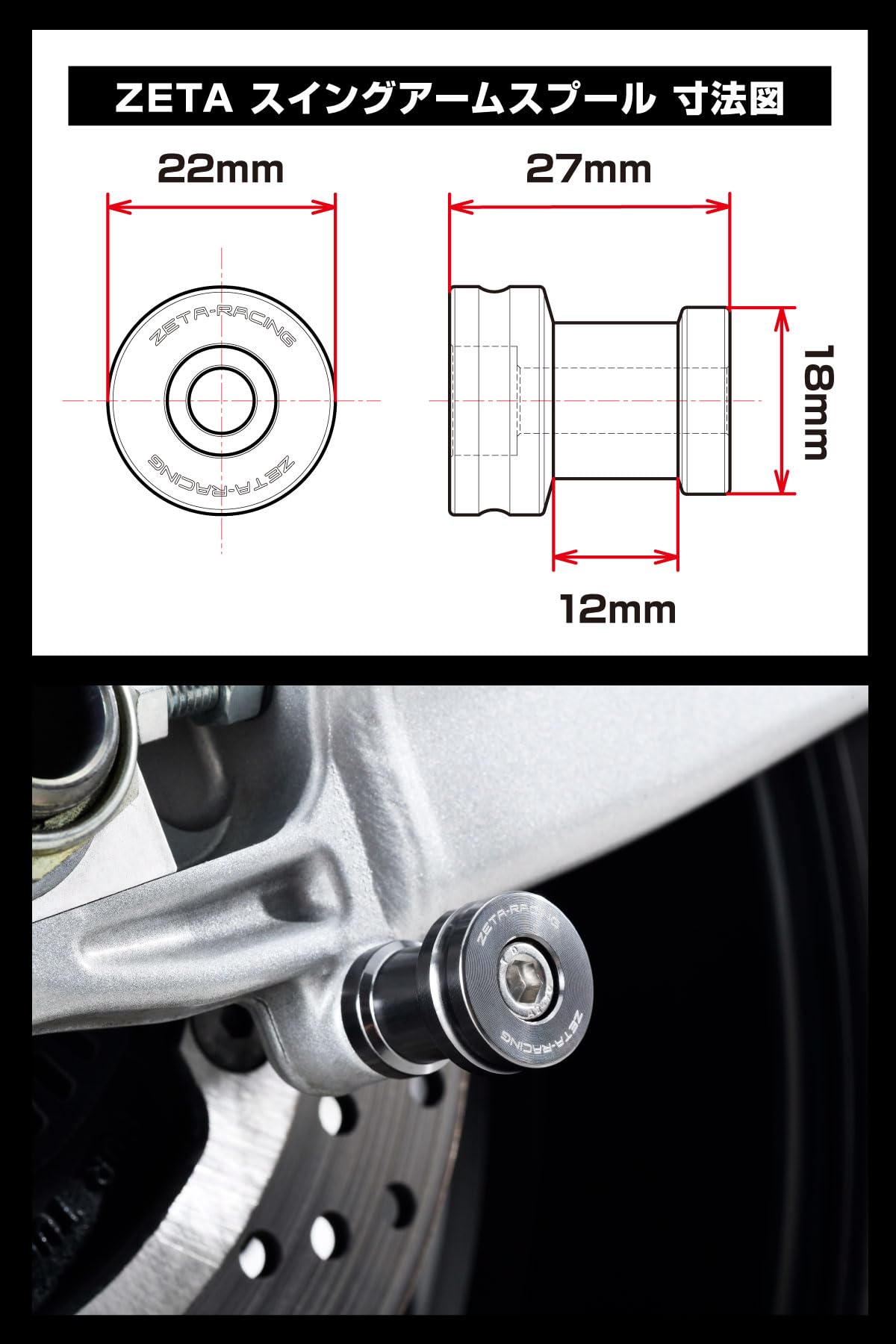 【新着商品】ジータレーシング(ZETA RACING) スイングアームスプール M6×35mm(汎用) チタンカラー U受け用 V受け用 リアスタンド用 フック ステンレスボルト 高強度ジュラルミン材 ダートフリーク Dirtfreak ZS93-1408