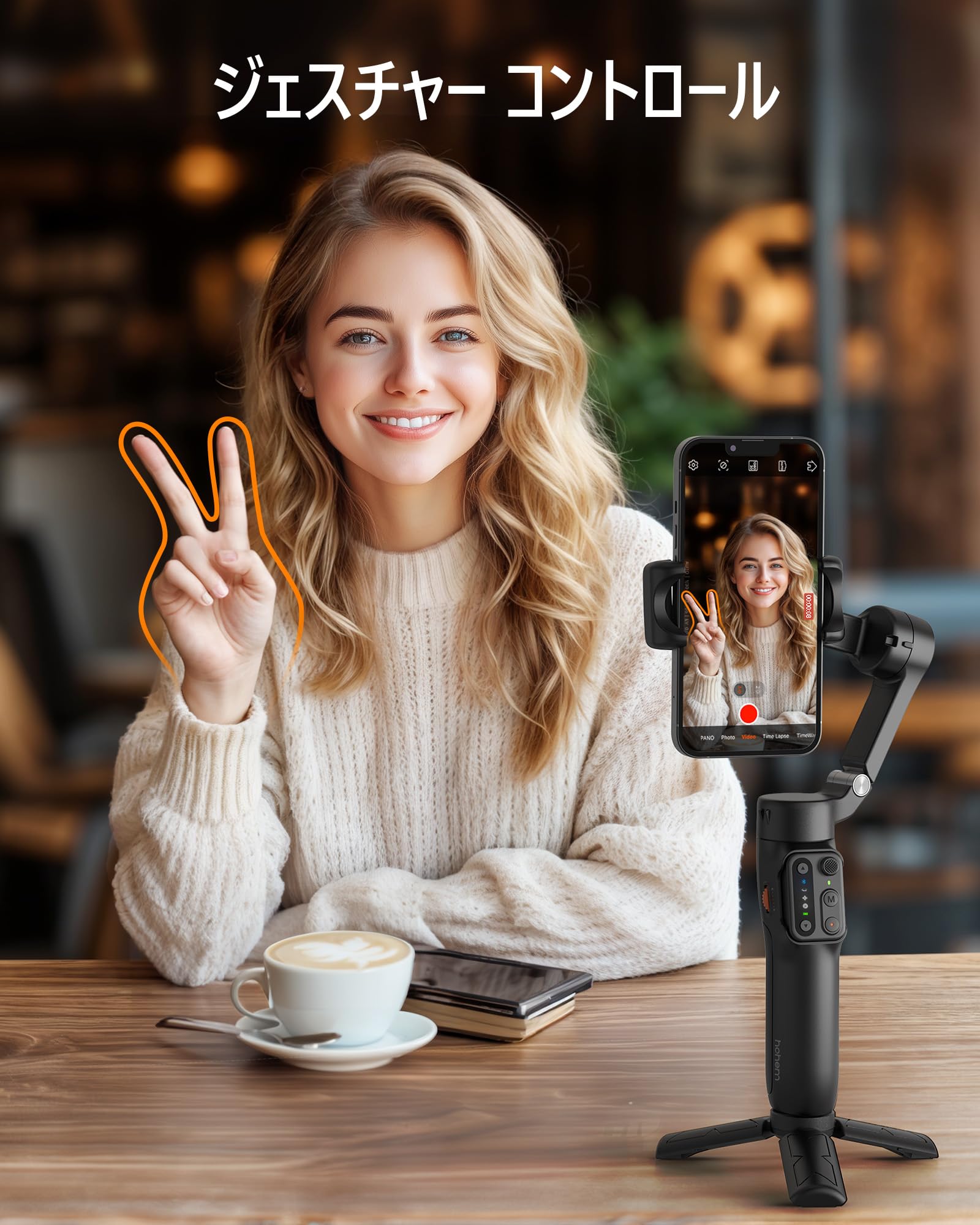 【自動追跡&ジェスチャーコントロール】専用アプリ Hohem Joy で顔の追跡に制限がなく、常に被写体を中心に追跡して撮影することができます。また、hohem Joyアプリで、特定のジェスチャを認識でき、遠くから手の動きだけで操作して写真を撮り始めましょう。hohem X3 SE を使えば、よりプロフェッショナルなビデオ撮影が簡単になります。