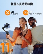 【長時間のバッテリー駆動と多機種対応】hohem X3 SE には、連続使用が11時間可能なバッテリーが搭載されており、長時間使用できます。外出先で撮影する場合には、撮影時間を最大化し、多くの作品を記録することができます。普段お使いのiPhone11-15/11-15Pro/Pro Max、あるいは他のブランドのスマホにもほぼ対応可能です。最大300g、幅58~98mm、最大厚さ12.5 mm、最大7インチのスマホと互換性があります。