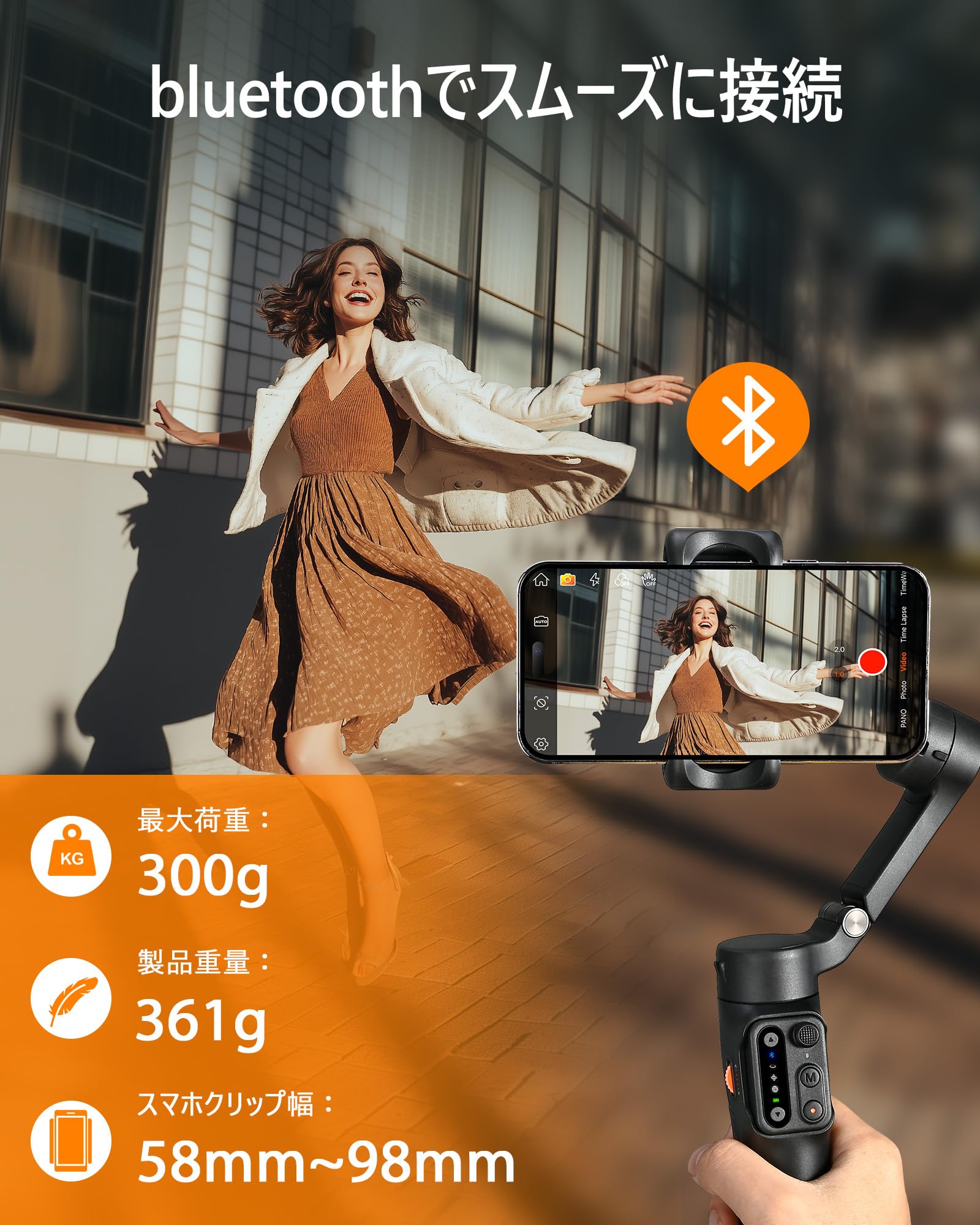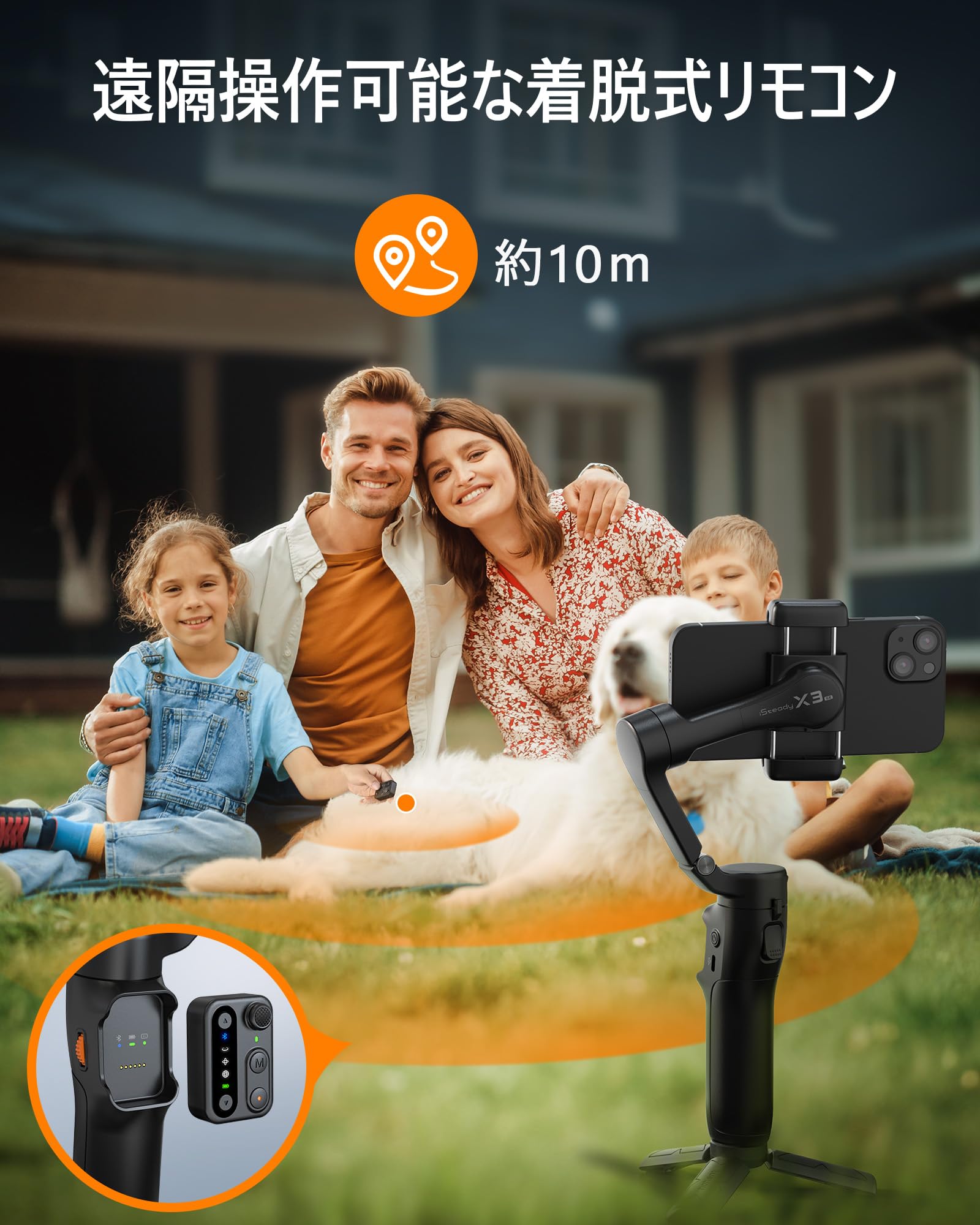 【脱着式リモコン付き】hohem X3 SE にはBluetoothリモコンが付いており、iPhoneやAndroid端末のネイティブカメラアプリコントロールに対応しています。シャッターコントロールやジンバルの角度調整など、遠くからでも簡単に撮影することができます。常にジンバルを手に持つ必要がないので、両手を解放できます。一人旅で写真を撮る時やパーティーの集合写真を撮るのに便利です。