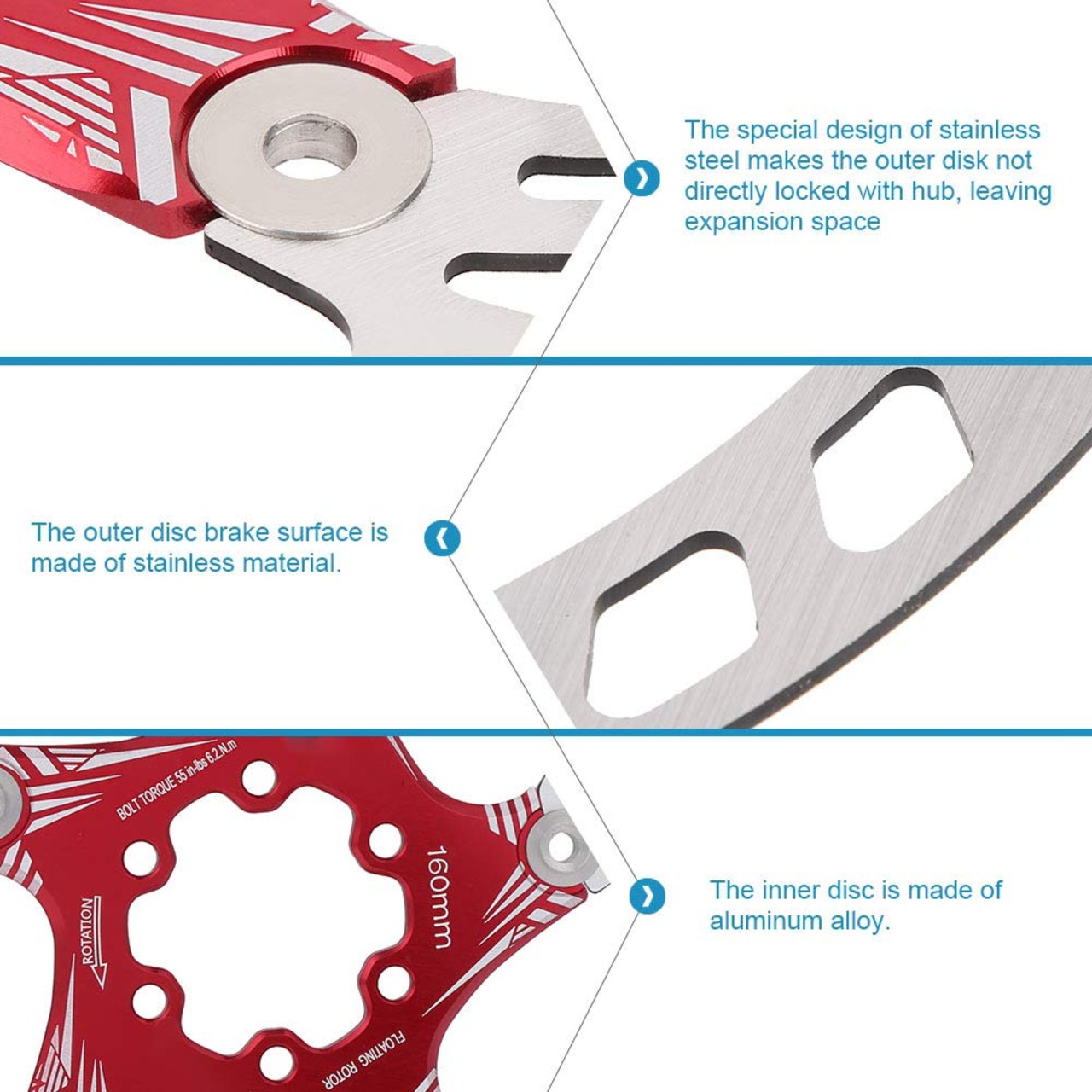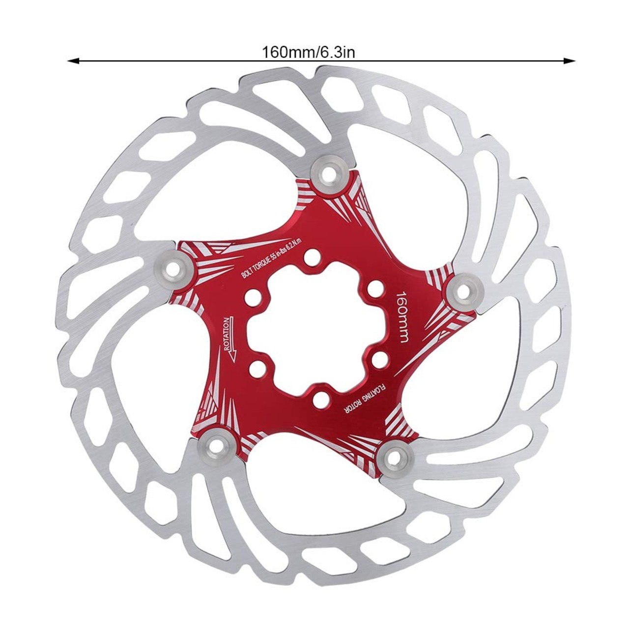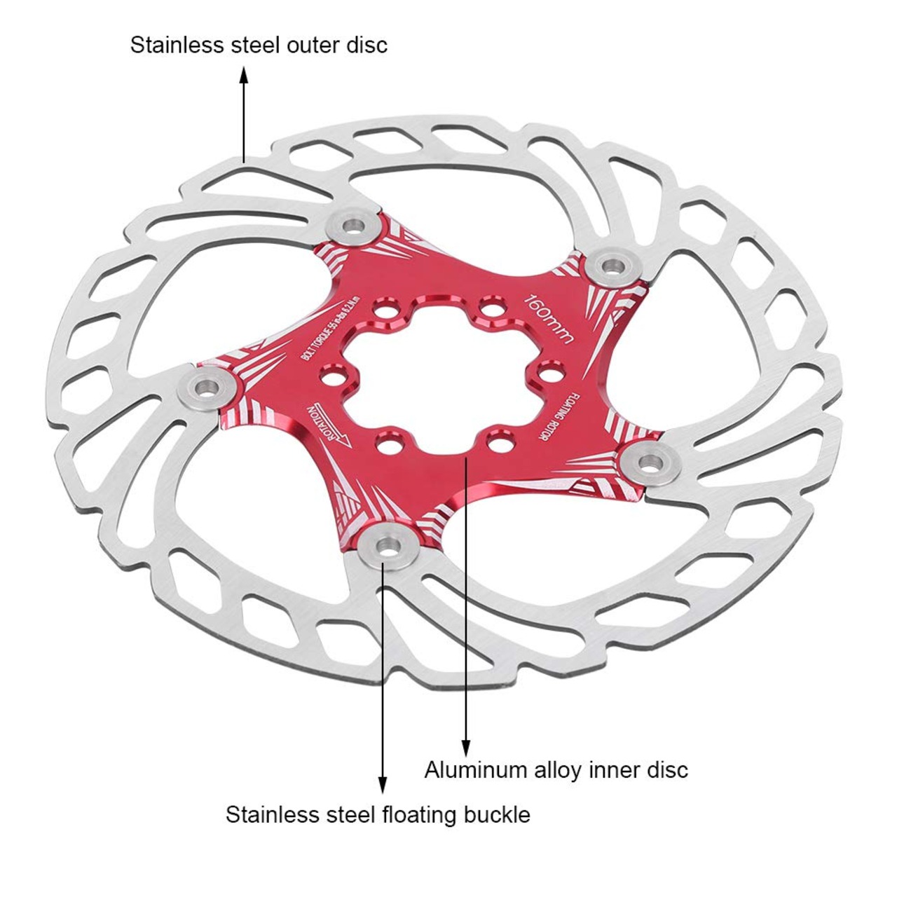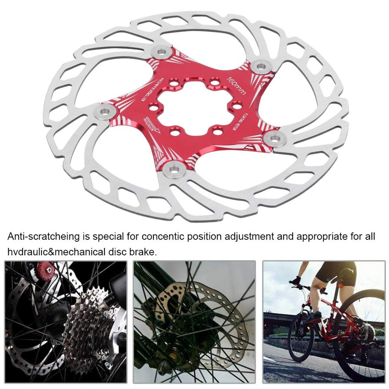 ディスクブレーキローター 160 mm マウンテンバイク 耐久 長時間使用 取り付け簡単 5ネイル ディスクブレーキ 超軽量 金属 サイクリングアクセサリー 赤