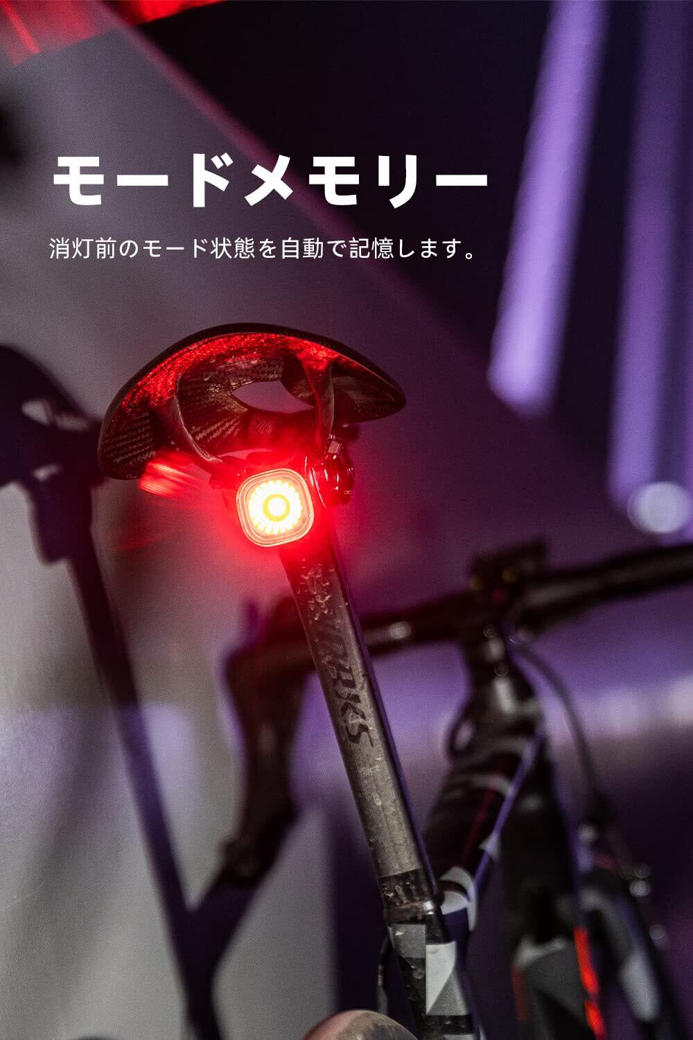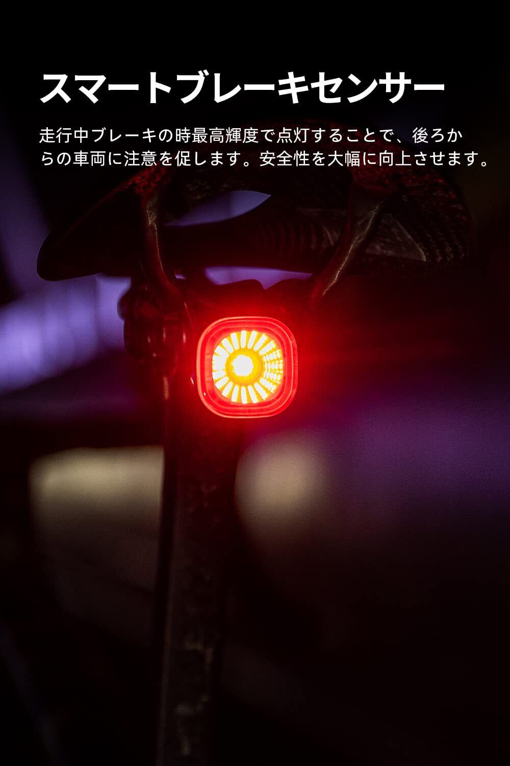 ブレーキ感応:どんなモードでも、振動検知で自転車のブレーキ状態を敏感にキャッチすることができます。内蔵のブレーキセンサーにより、ブレーキを感知すると自動的に最高輝度に点灯します。安全性を大幅に向上させます。