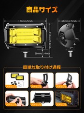 【商品詳細】:イエローLED作業灯は高輝度チップを採用し、72w高輝度5インチ作業灯は遠距離で広い照明を実現し、悪天候下での運転をより安全にすることができます。