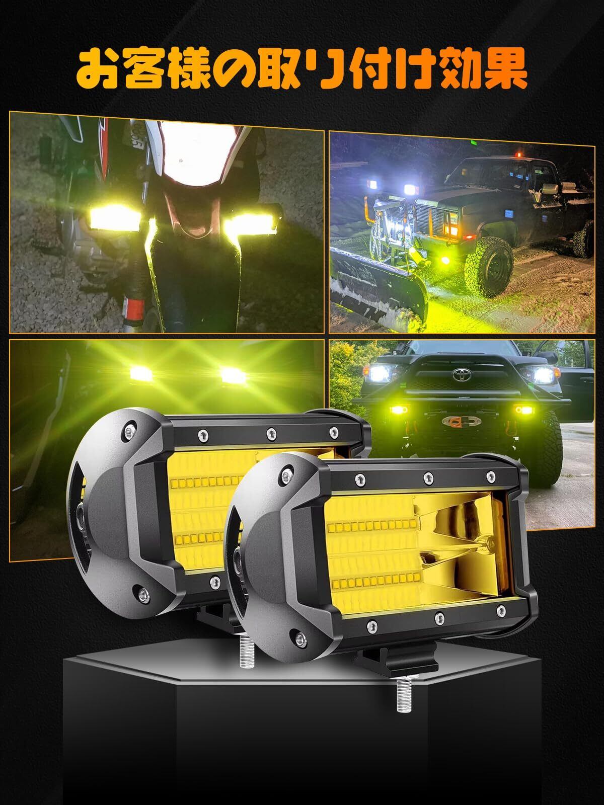 Chelhead 5インチ LED作業灯 72W イエロー 12-24V兼用 バイク/トラック/重機用 (フォグランプ/前照灯/デッキライト/集魚灯兼用) IP67防水防塵 高輝度 2個セット ATV/UTV/SUV対応