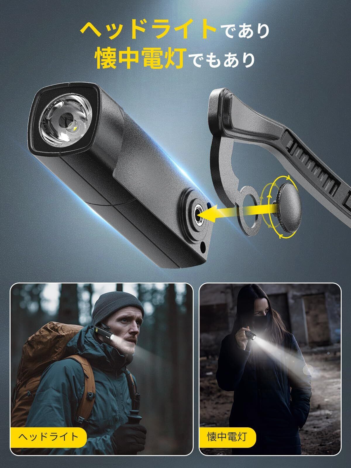 【一台多役・夜間の活動に最適】取付可能なヘッドバンドが付属しているので、懐中電灯としても使用可能です。キャンプ、ハイキング、釣り、DIYなどあらゆる夜間活動に最適な光を提供します