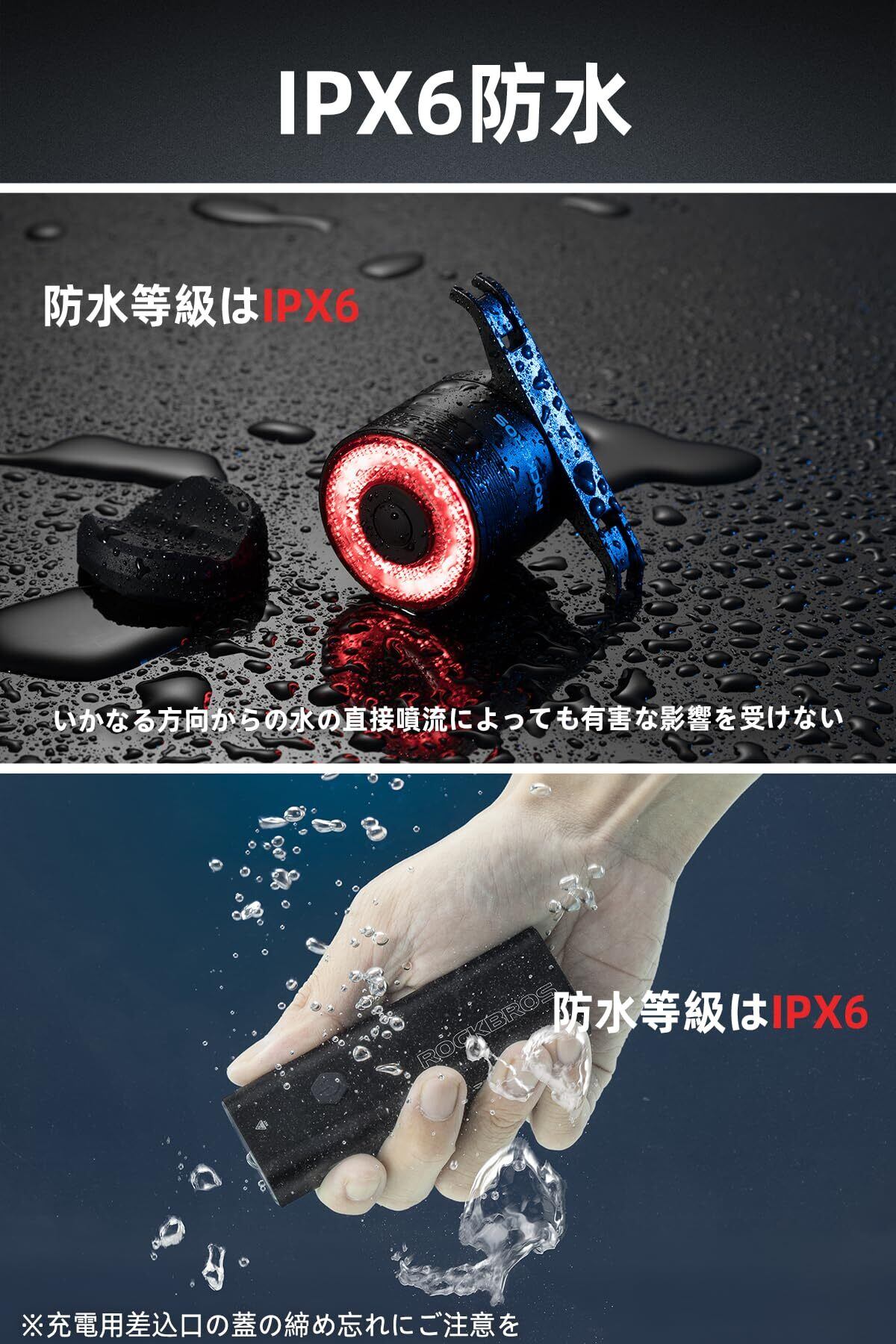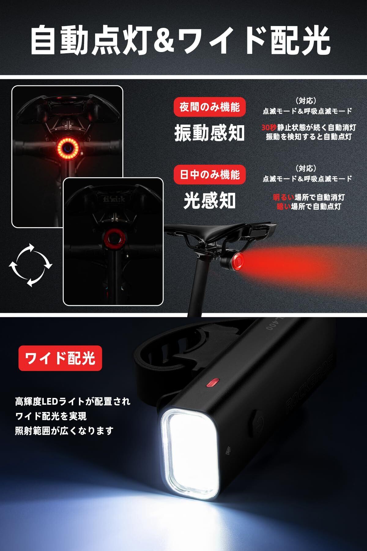 ROCKBROS 自転車ライトセット テールライト 自転車 ライト type-c充電式 自動点灯 高輝度 4点灯モード IPX6防水 ロードバイク ライト フロントライト アルミ合金 バッテリー残量表示 取付簡単 通勤 通学 サイクリング 防災 夜間走行