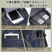 ・サイズ: 縦62cm×横40cm×厚み22cm 重量:0.9kg 容量:60L 素材:ポリエステル 大きめ60Lサイズは普段使いだけでなく旅行や日帰りの軽ハイキングでも安心の軽量・多機能・高耐水バックパック。背面長とショルダーベルトのカーブなどはが背負ったときに最も快適になるような設計。ブレを抑えるウェストベルトや補強された底面生地はよりアウトドア用途に適した特徴を備え、メインコンパートメントは大きな荷物もスムーズに出し入れ可能です。トップには小物を入れるジッパーポケット、両サイドには太めのボトルも入るマチ付きポケットなどフィールドでの快適な使い心地をサポートする基本的な機能をしっかりと備えています。