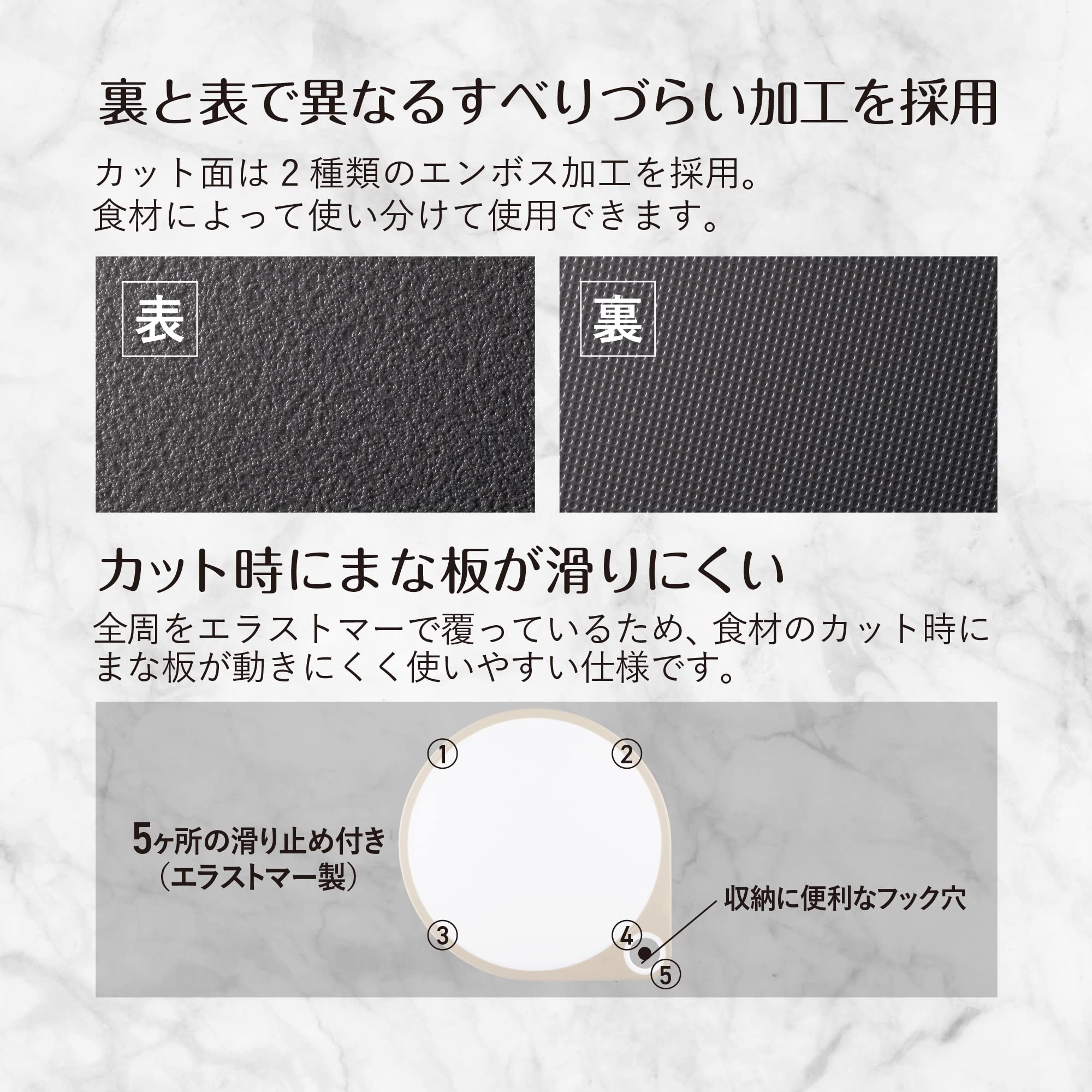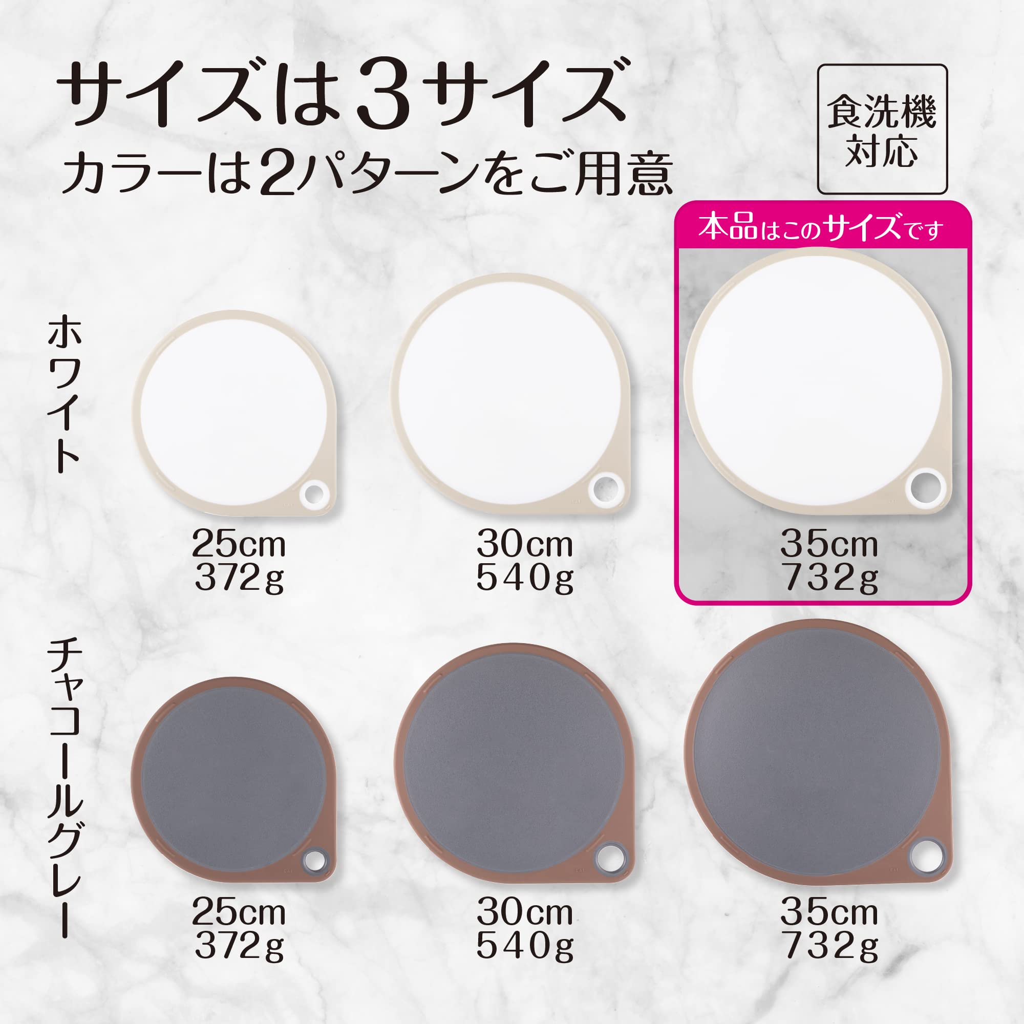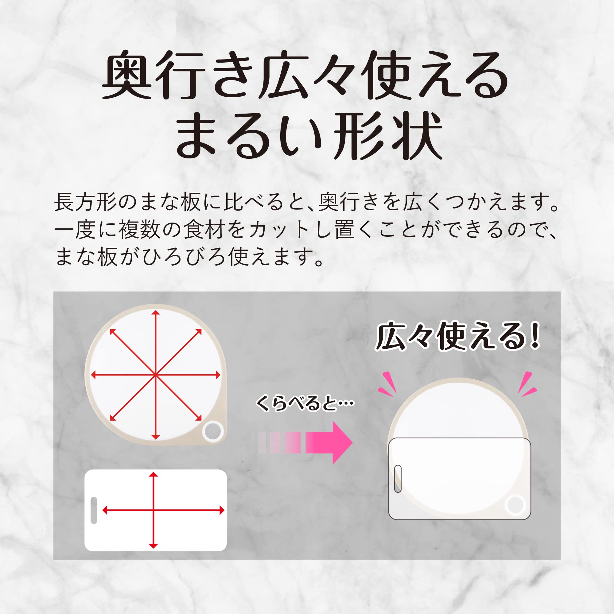 奥行きたっぷり、ひろい作業スペースが魅力のまるいまな板です。