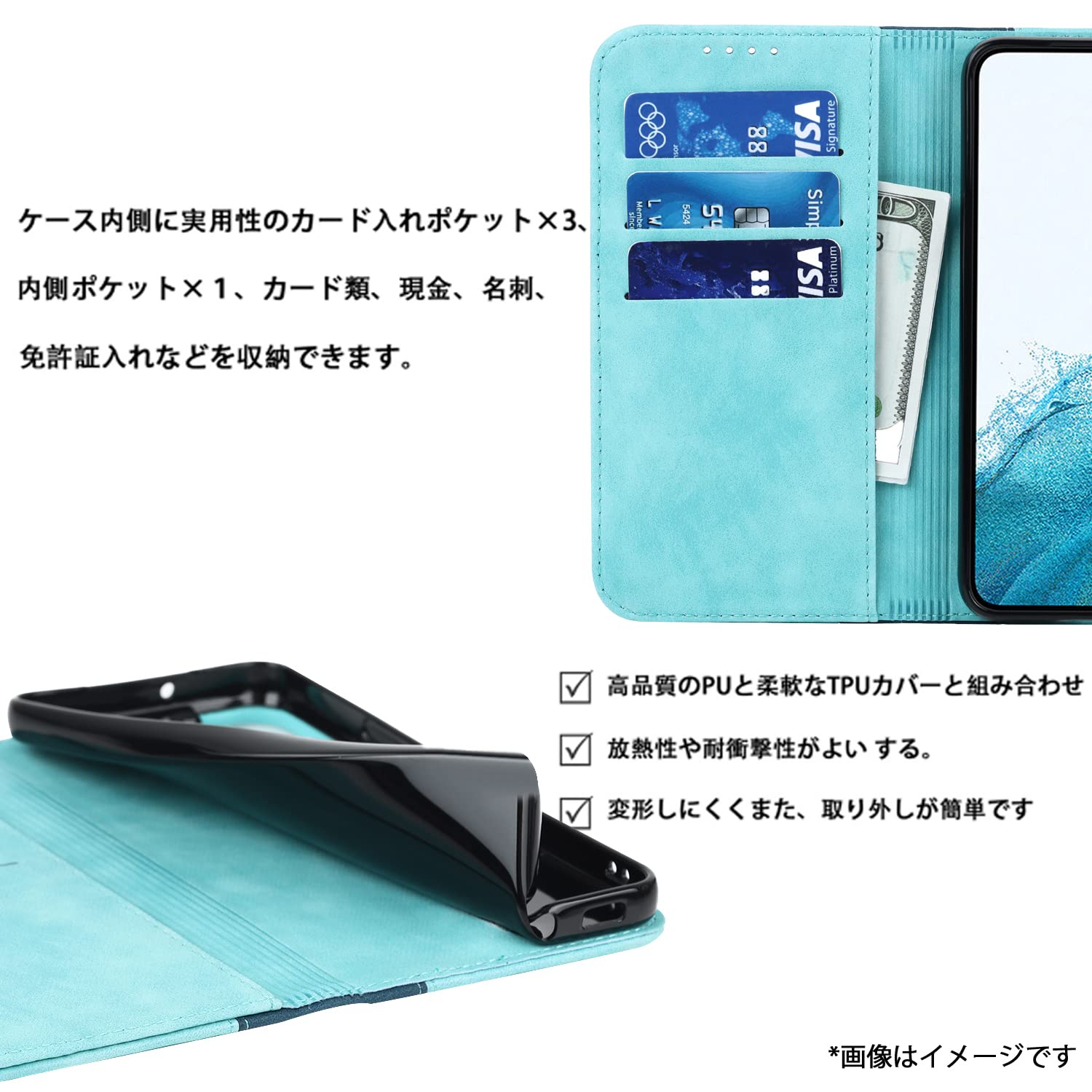 【耐衝撃素材】外部のTPUレザーと内部の耐衝撃性PU素材という二重保護で、おしゃれ外観で放熱性や耐衝撃性がよいし、すり傷防止や防塵に優れています。変形しにくくて、全面保護を与える同時に着脱しやすいです。ケースを装着したまま、カメラ、電源ボタン、音量ボタン、コネクタなどが使用可能。
