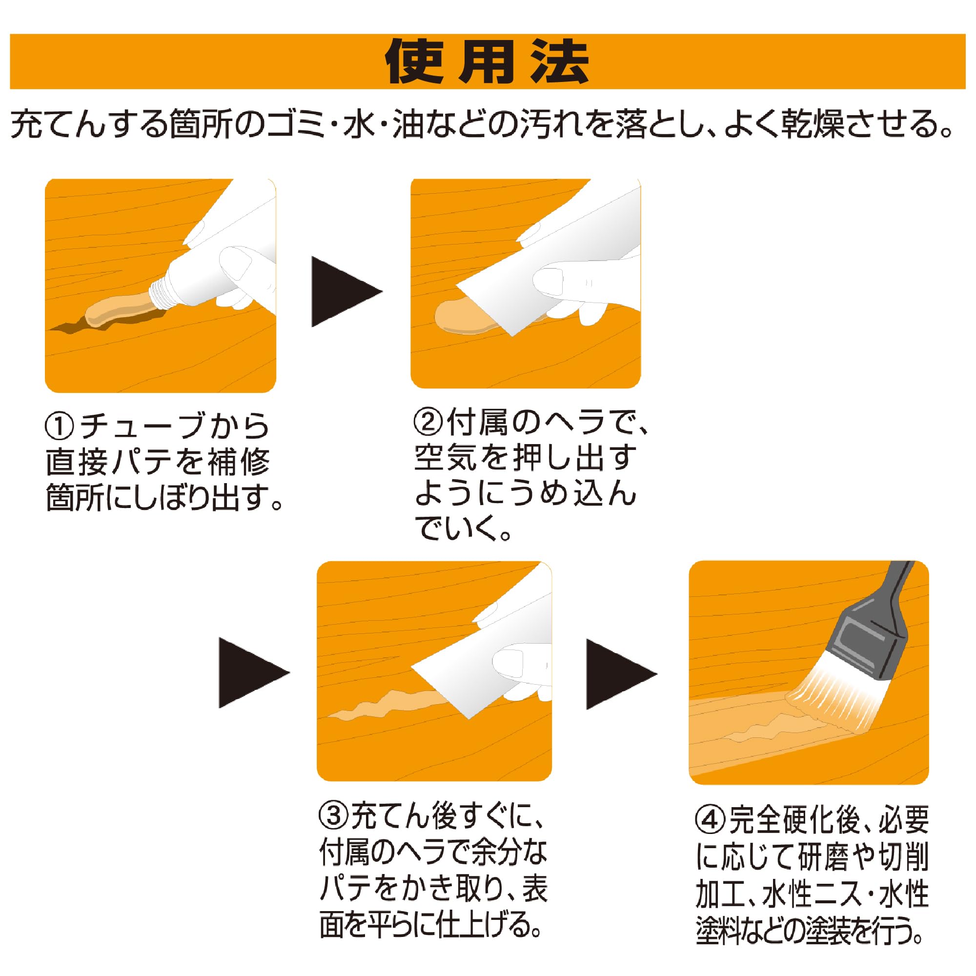 溶剤系パテと同様の速乾性と、水性ニス・水性ステインでの着色が可能