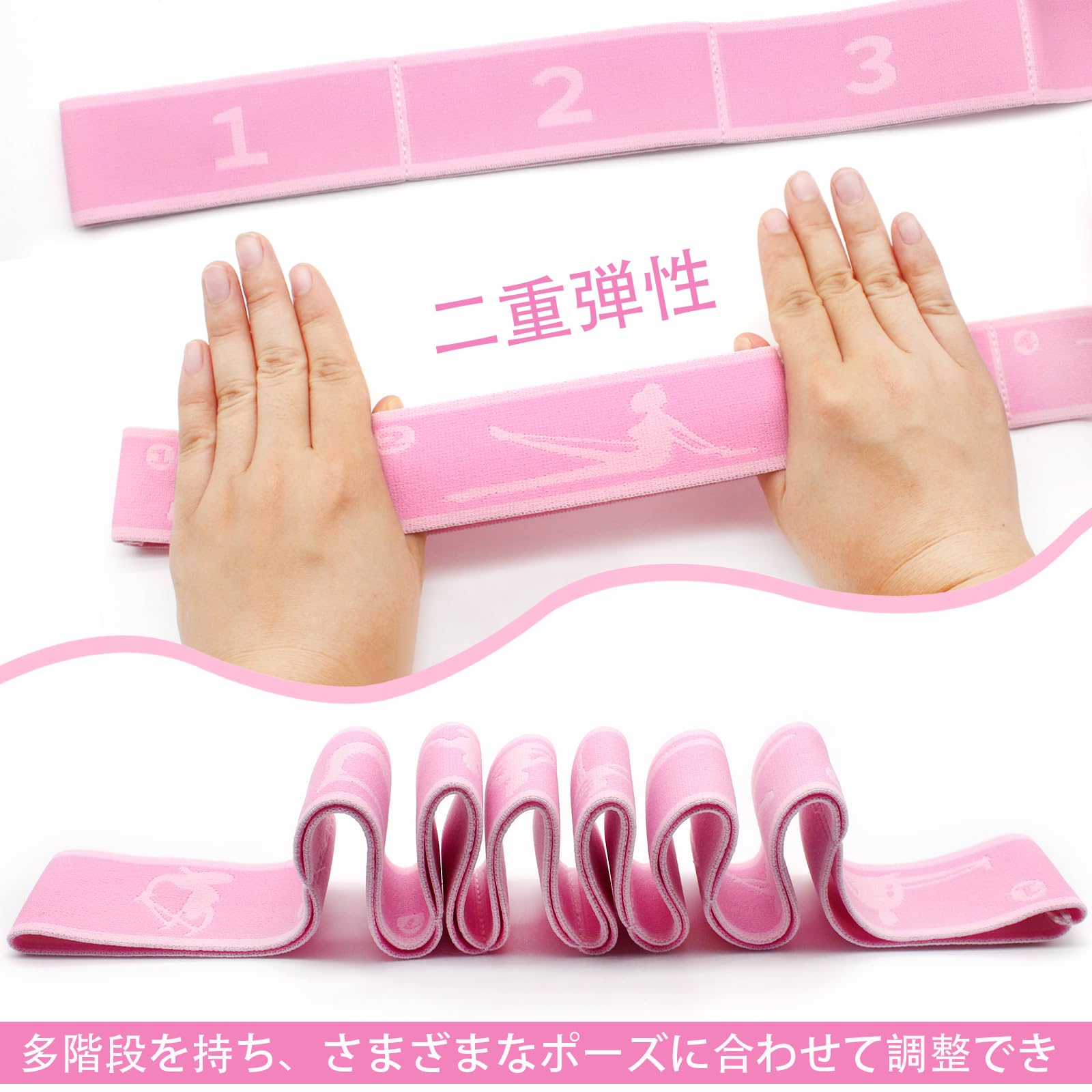 持ち運びが簡単:サイズ12*10*2cm。ストレッチストラップ自体は長さ97cm、幅4cm、重さは64グラムです。軽量で持ち運びが簡単です。屋外トレーニング、子供のダンストレーニングクラス、バレエクラス、ヨガクラス、スケートクラスなどに最適なアクセサリーです。必要なときにポケットやバッグに入れておいて、スペースをとらません。