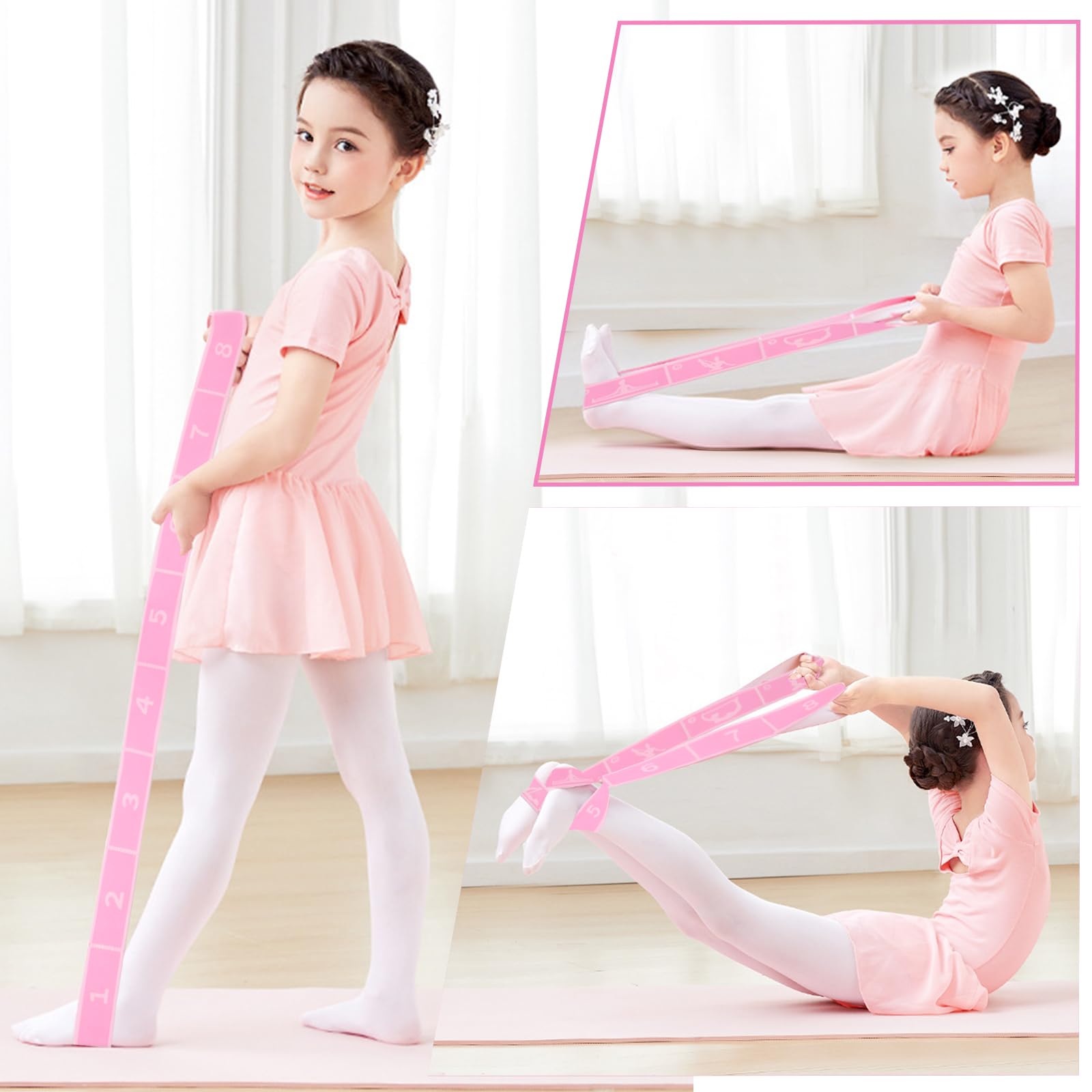 子供用ダンスストレッチバンド:可動性と柔軟性を向上させ、子供たちが基本的なダンスや体操のスキルを練習できるように、子供向けに特別に設計されています。足首を固定する、猫背を防ぐ、背筋を伸ばすなど。ダンス レジスタンス バンドを使ってウォームアップすると、怪我の予防とバランスの向上に役立ちます。