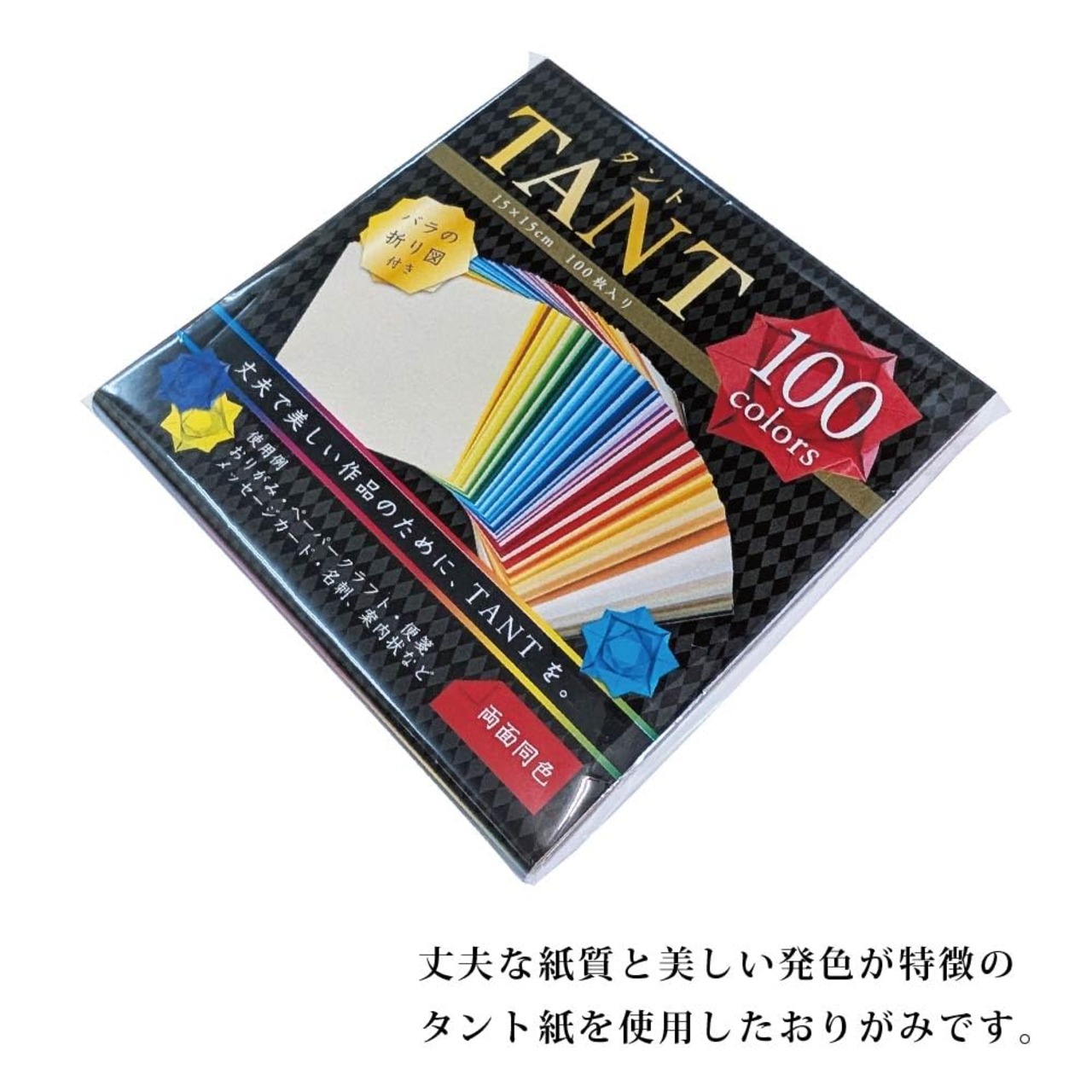 美しい発色と丈夫な紙質が特徴のタント紙を使用した折り紙です。100色の豊富なカラーバリエーションにより、さまざまな表現が可能です。
