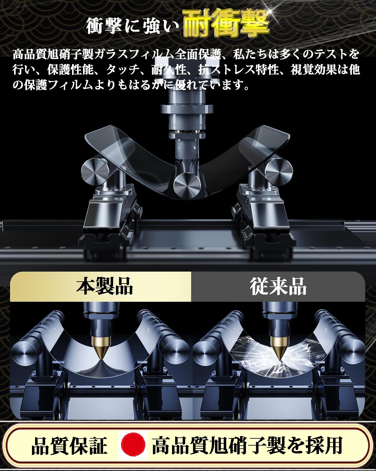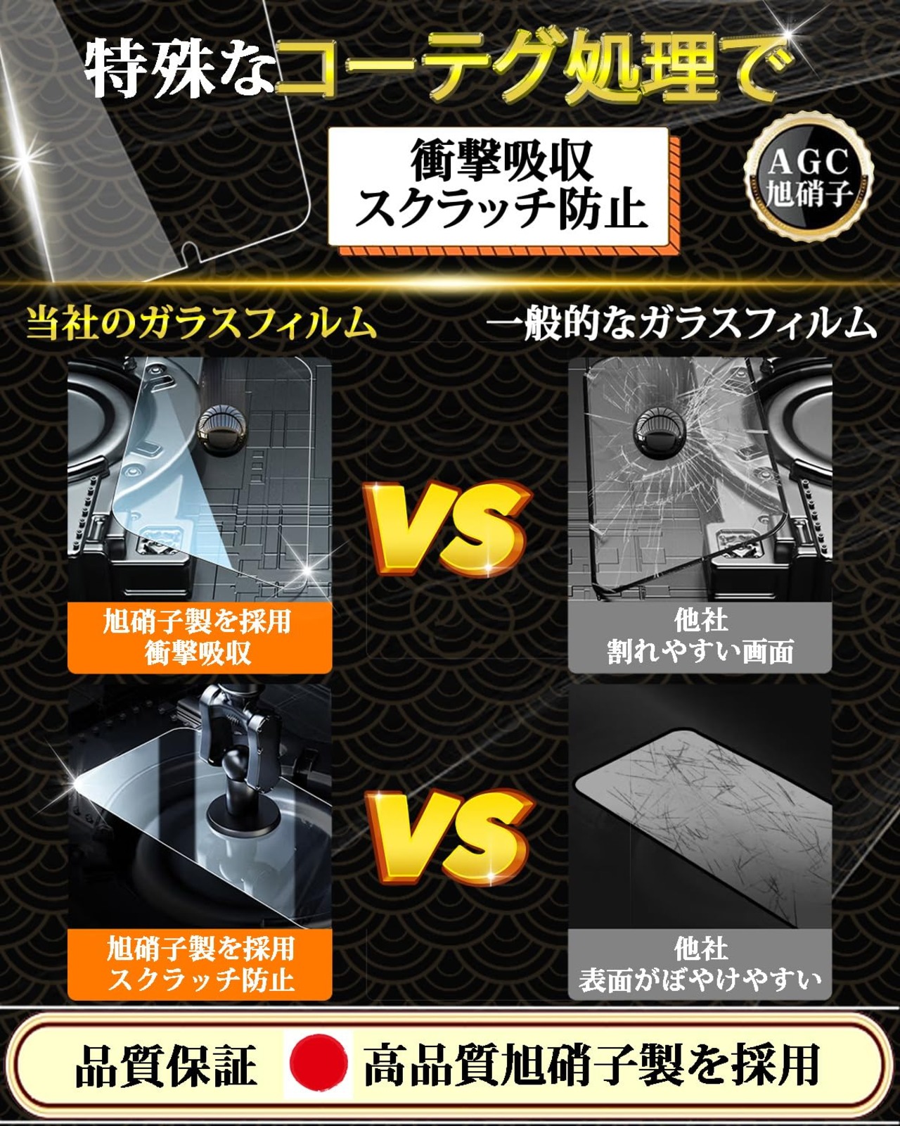 【最強硬度9H・飛散防止】9Hの表面硬度を誇る保護フィルムが摩擦や傷から液晶ガラスをしっかり保護します、引っかき傷に強く、うっかり鍵や硬貨などとこすれてしまっても傷がつかず、きれいな画面を保ちます。万が一の破損時も飛散防止加工によって破片はフィルムに張り付いた状態で破片がほとんど飛び散らない安全性の高いガラスになっています。