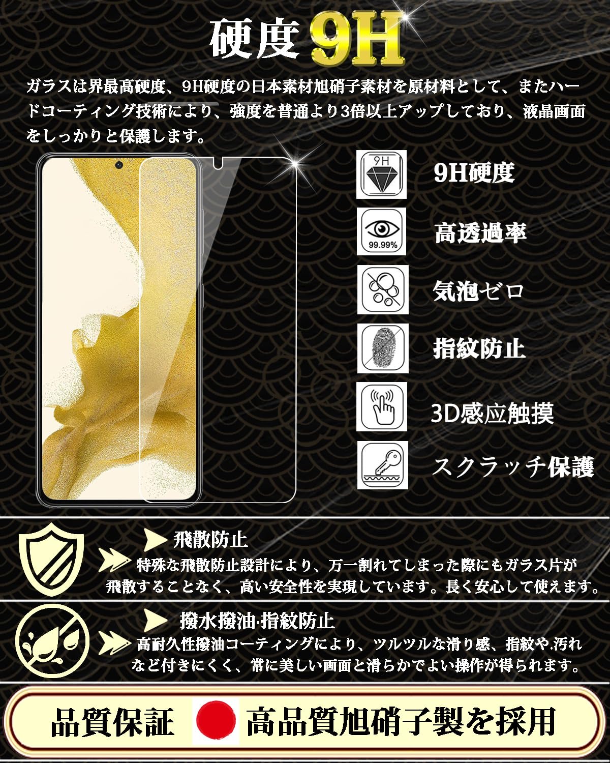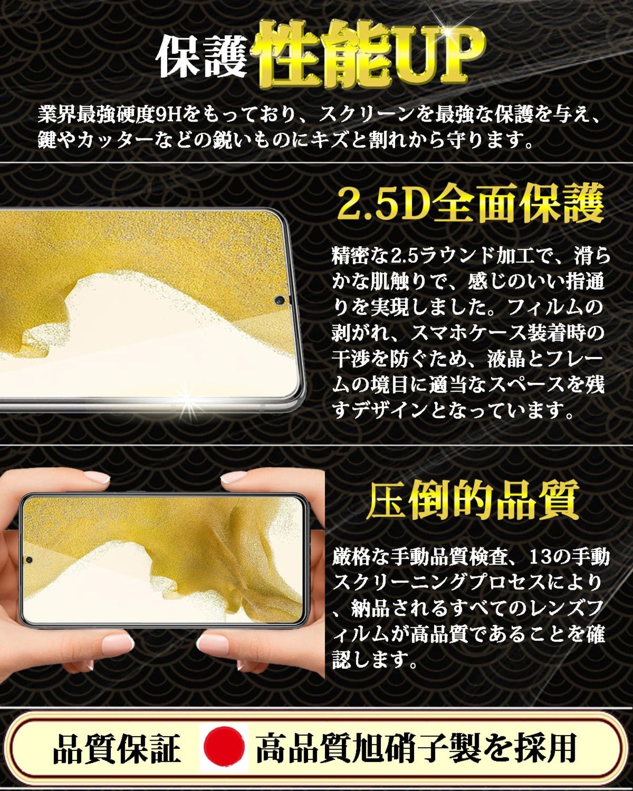 対応 Galaxy S22 ガラスフィルム SCG13 / SC-51C 液晶保護フィルム ギャラクシーS22 強化ガラスフィルム 0.18mm 日本製素材旭硝子製 硬度9H 高透過率 気泡ゼロ 飛散防止 耐衝撃 指紋防止 スクラッチ防止【2枚入り】