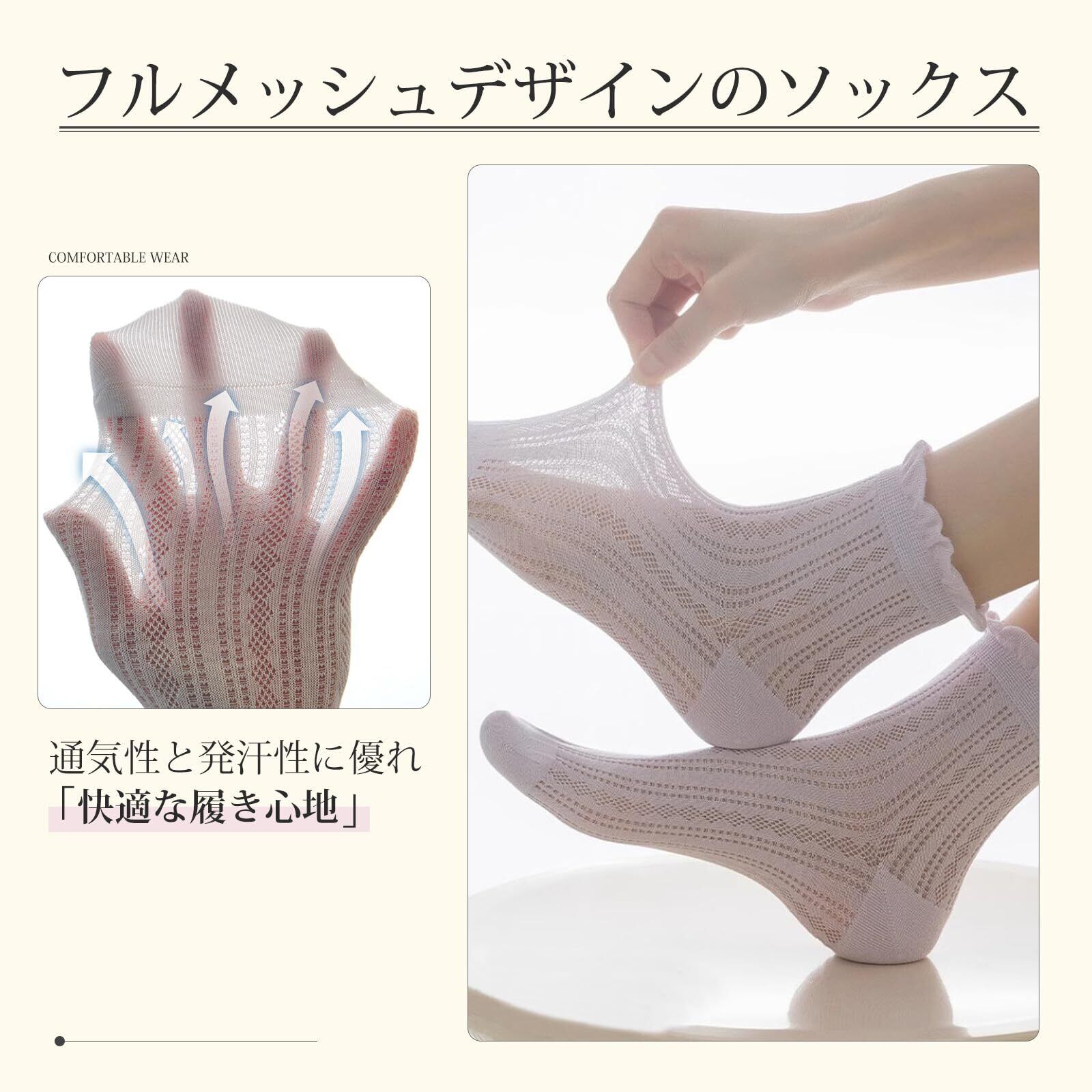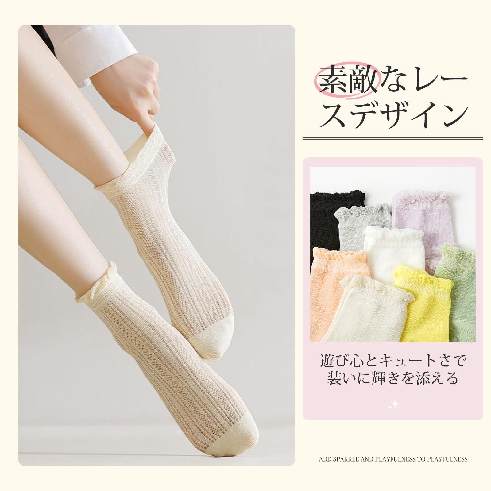 [Yazon] 靴下 レディース 夏 くるぶし かわいい メッシュソックス 綿8足セット 薄手レース おしゃれ 女性用 くつした ショートソックス 通気 涼しい靴下 夏用 旅行 使い捨てくつ下 丈夫 婦人 22-24.5cm