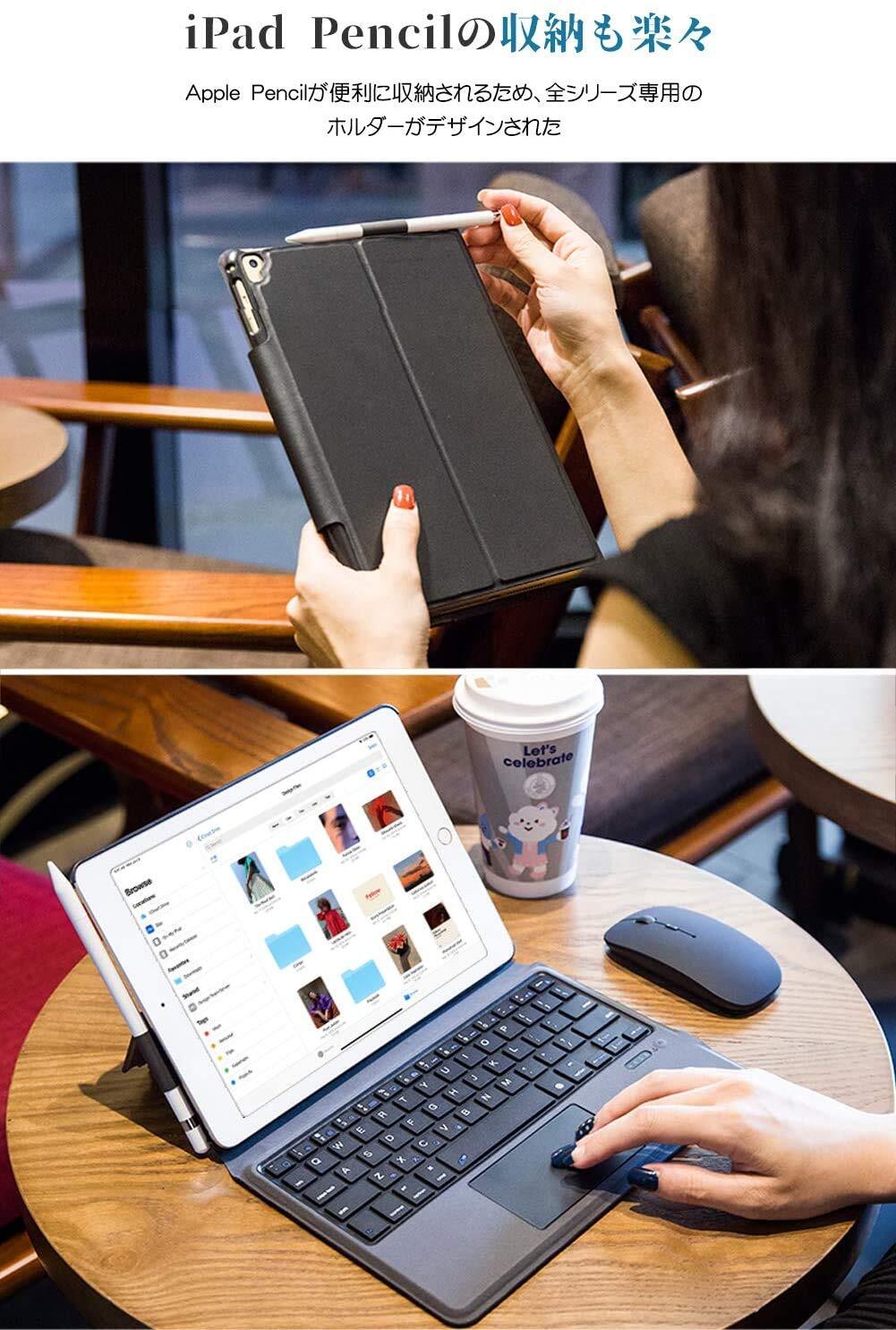 【Bluetoothキーボード&保護ケース一体型】:EWiN キーボード付きケースは、Bluetoothキーボード&保護ケース一体型です。また、タッチパッド搭載仕様なので、ケースを着装すると、iPadが1秒でノートパソコンになり、在宅勤務やオンライン授業などの際は、パソコンのように楽々操作可能で、作業の効率を向上させることができます。