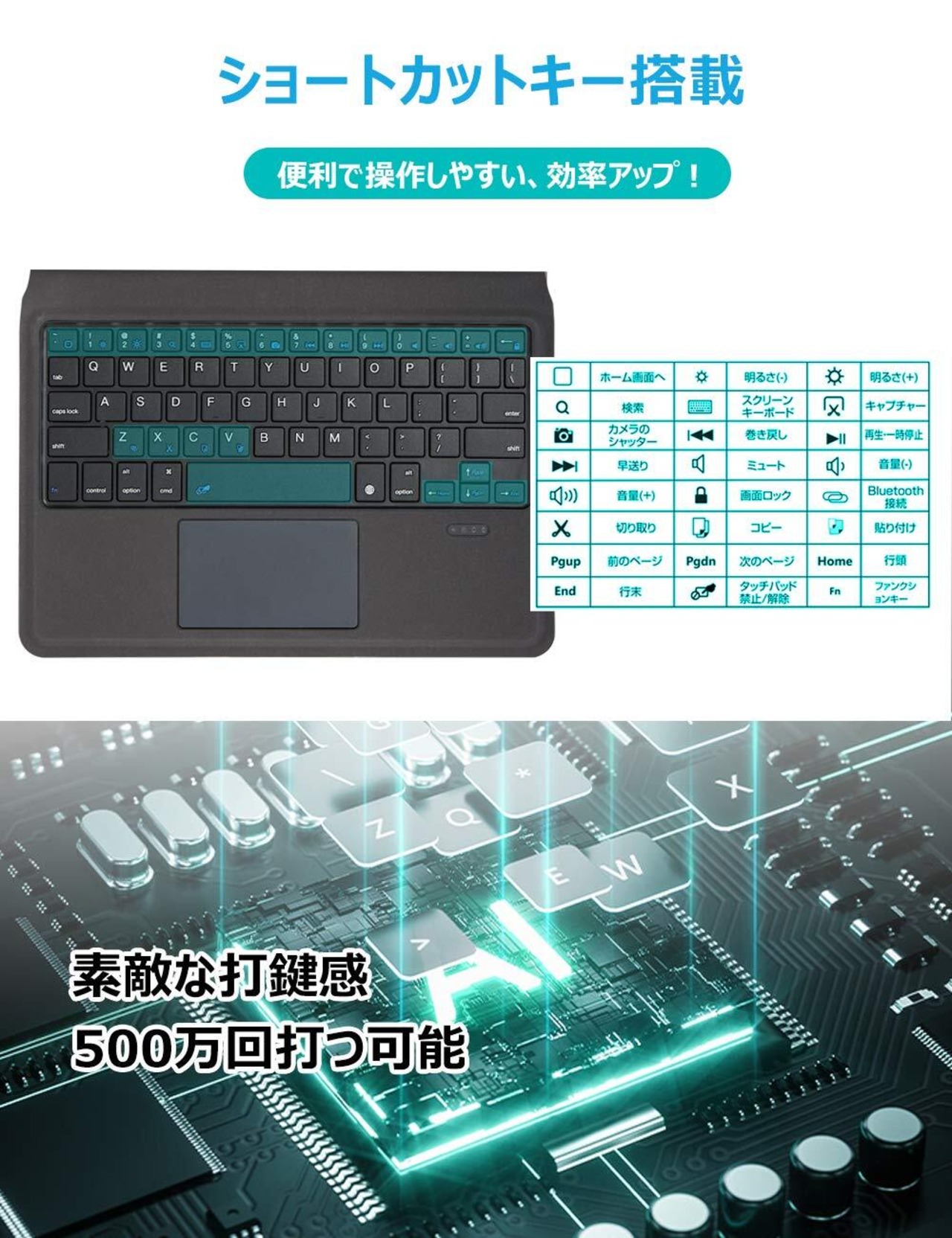 【マルチ機能・パッケージ内容】オートスリープ機能&スタンド機能搭載です。カバーを閉じるとiPadがスリープモードに入り、省エネです。ケース背面部にも滑り止めのスタンド機能を装備シます。パッケージ内容:キーボード付きケースx1、USB&Type-C充電ケーブルx1、日本語取扱説明書(書付き)x1。(ご注意:iPad本体は含まれません。)