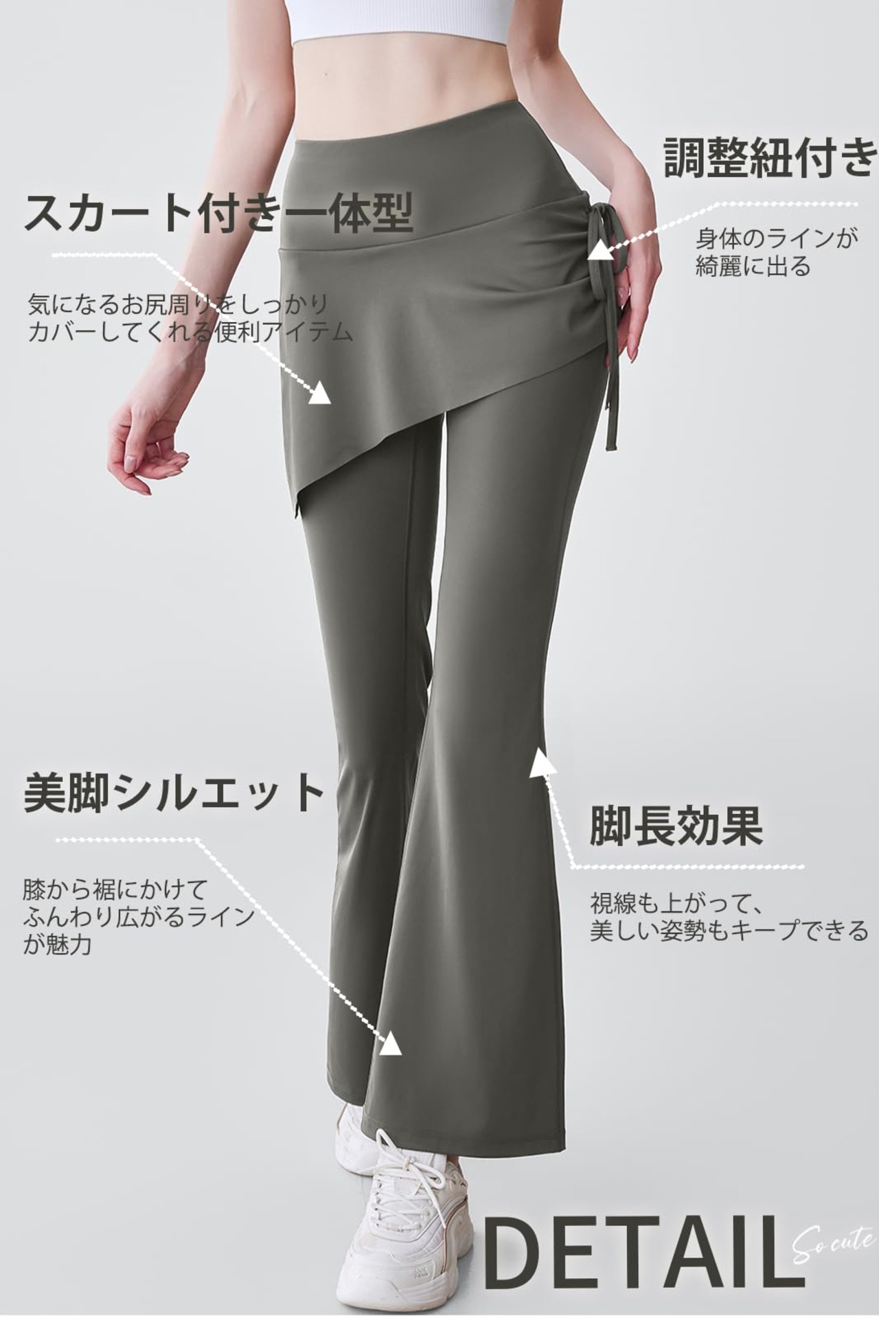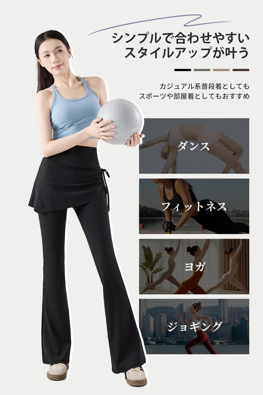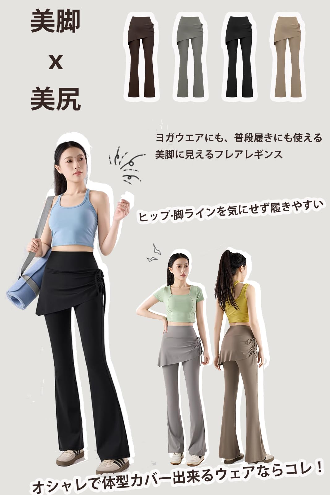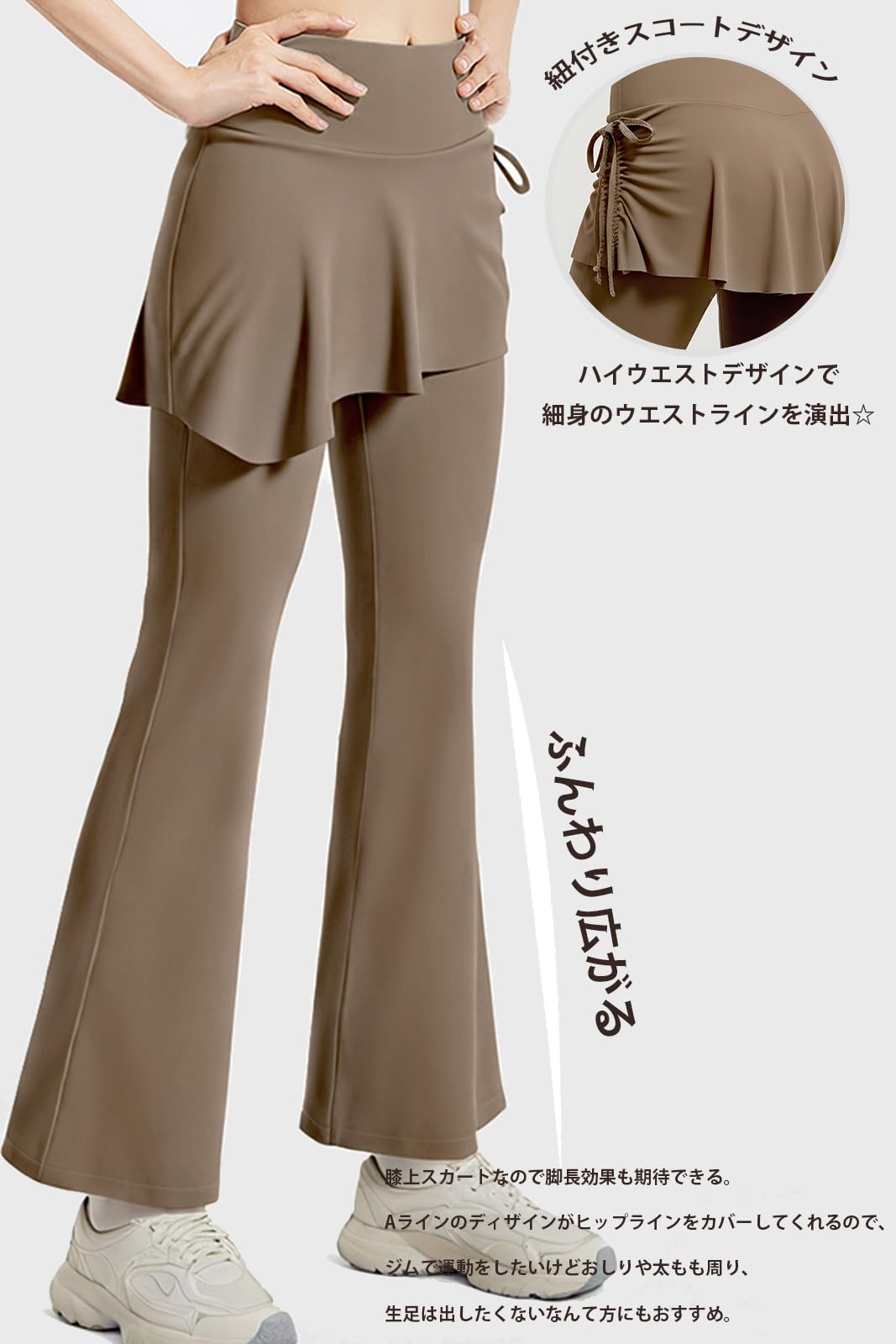 [MORGEN SKY] レディース ヨガパンツ フレアパンツ 一体型 スカート付き レギンス レイヤード ダンス ヨガウェア フィットネス スポーツ ピラティス トレーニング ハイウエスト ストレッチ 体型カバー 美脚 CK139