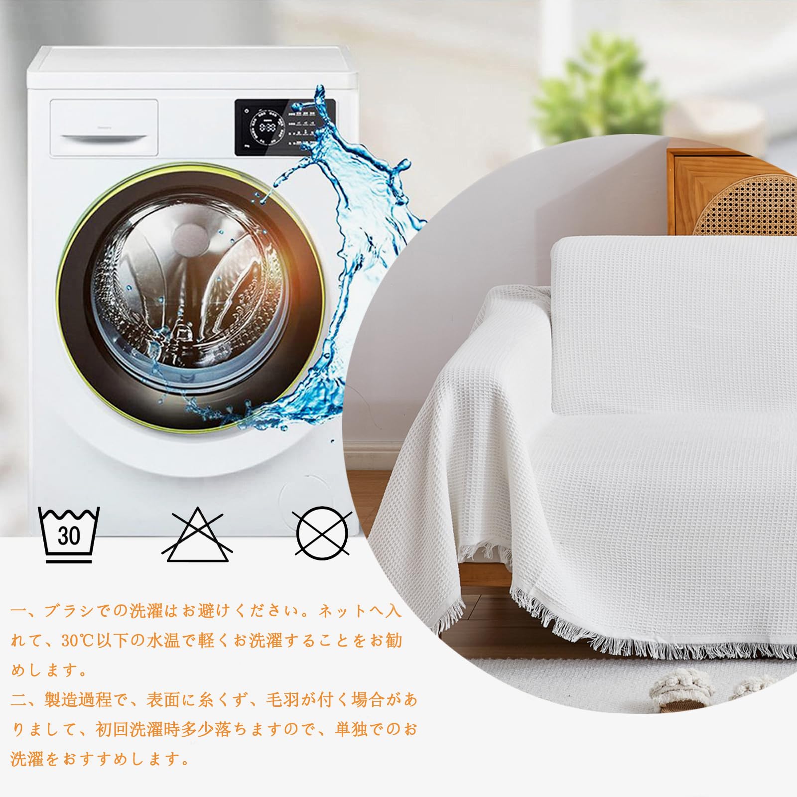 水洗える、滑り止め:洗濯の際は、単独でお洗濯をおすすめします、ブラシでの洗濯はお避けください。ネット へ入れて、30℃以下の水温で軽くお洗濯する ことをお勧めします。製造過程で、表面に糸くず、毛羽が付く 場合がありまして、初回洗濯時多少落ちます ので、単独でのお洗濯をおすすめします。