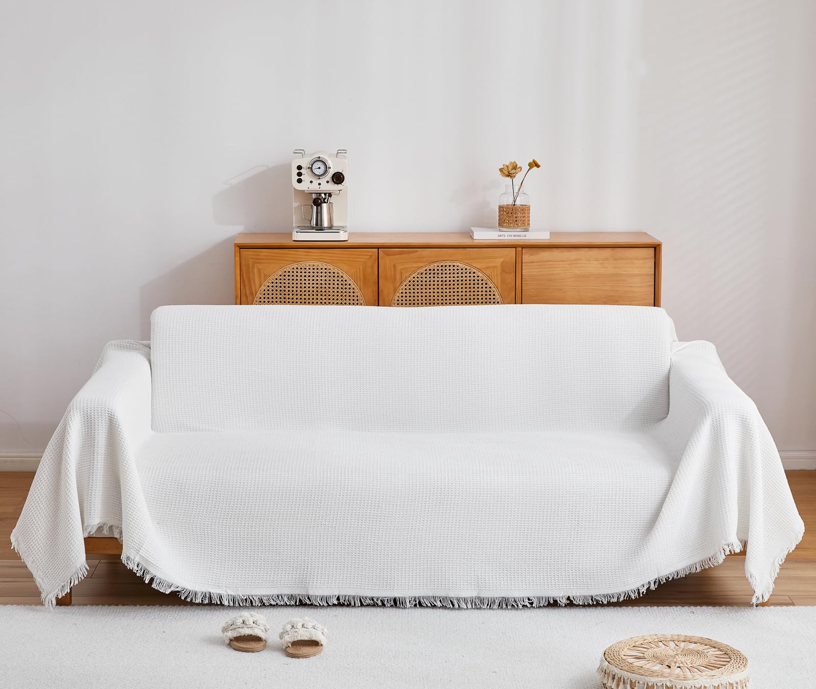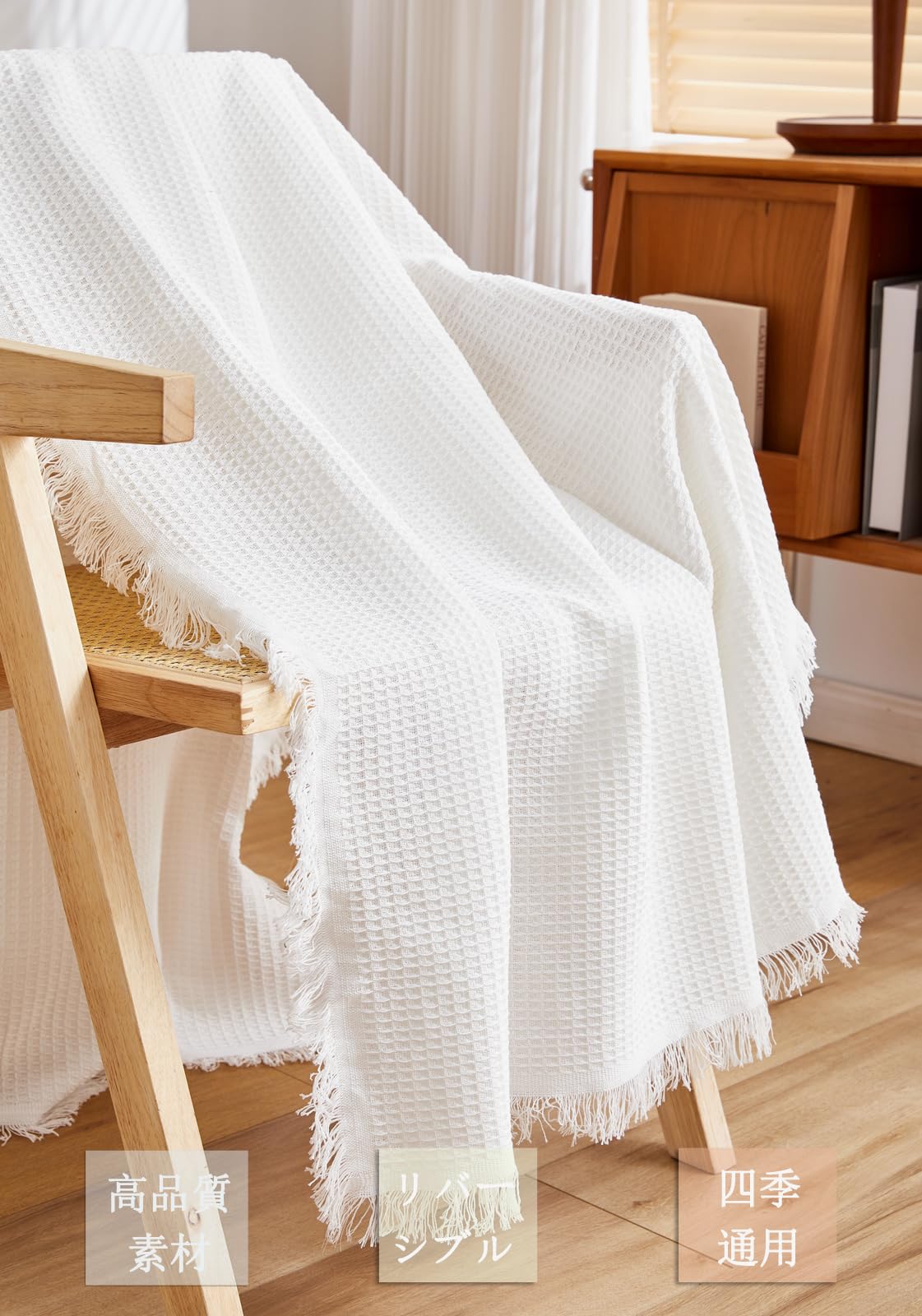 シンプルなデザイン フリンジ付き: 幅広い年齢グループに人気の北欧風、高級感UP。お部屋内のインタリアと合いやすく、使うと室内の雰囲気も明るくなりますぞ, 両面が違っていますが, どちらの面も正常に利用できます。飽きたときはベッドにかけたり多目的でつかえます。