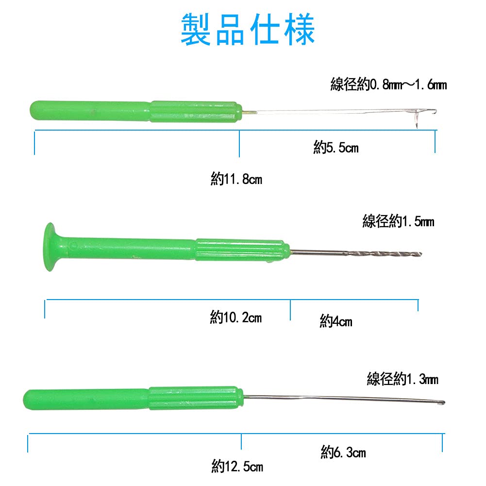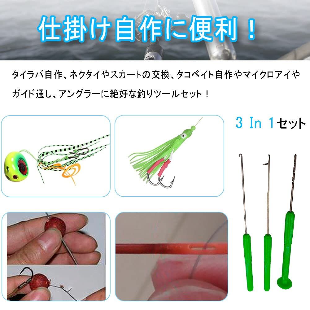 【在庫処分】釣りニードル ボイリー 鯉釣り タイラバ仕掛け自作 クイック交換 アシストニードル ドリル針 フック外し ライン通し3点セット 柄付 グリーン