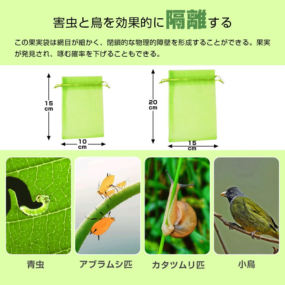 LIKENNY 果物袋 果物保護バッグ 50枚セット 巾着式 メッシュ袋 通気性 光通過 果樹用 防虫ネット 防鳥ネット 鳥避けネット びわ 桃 ぶどう 野菜用 保護ネット (10*15cm)