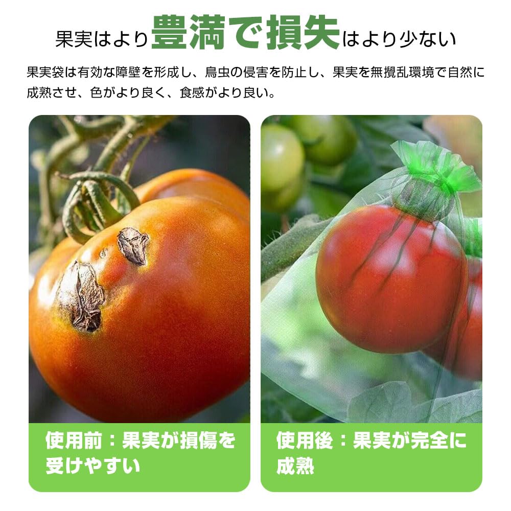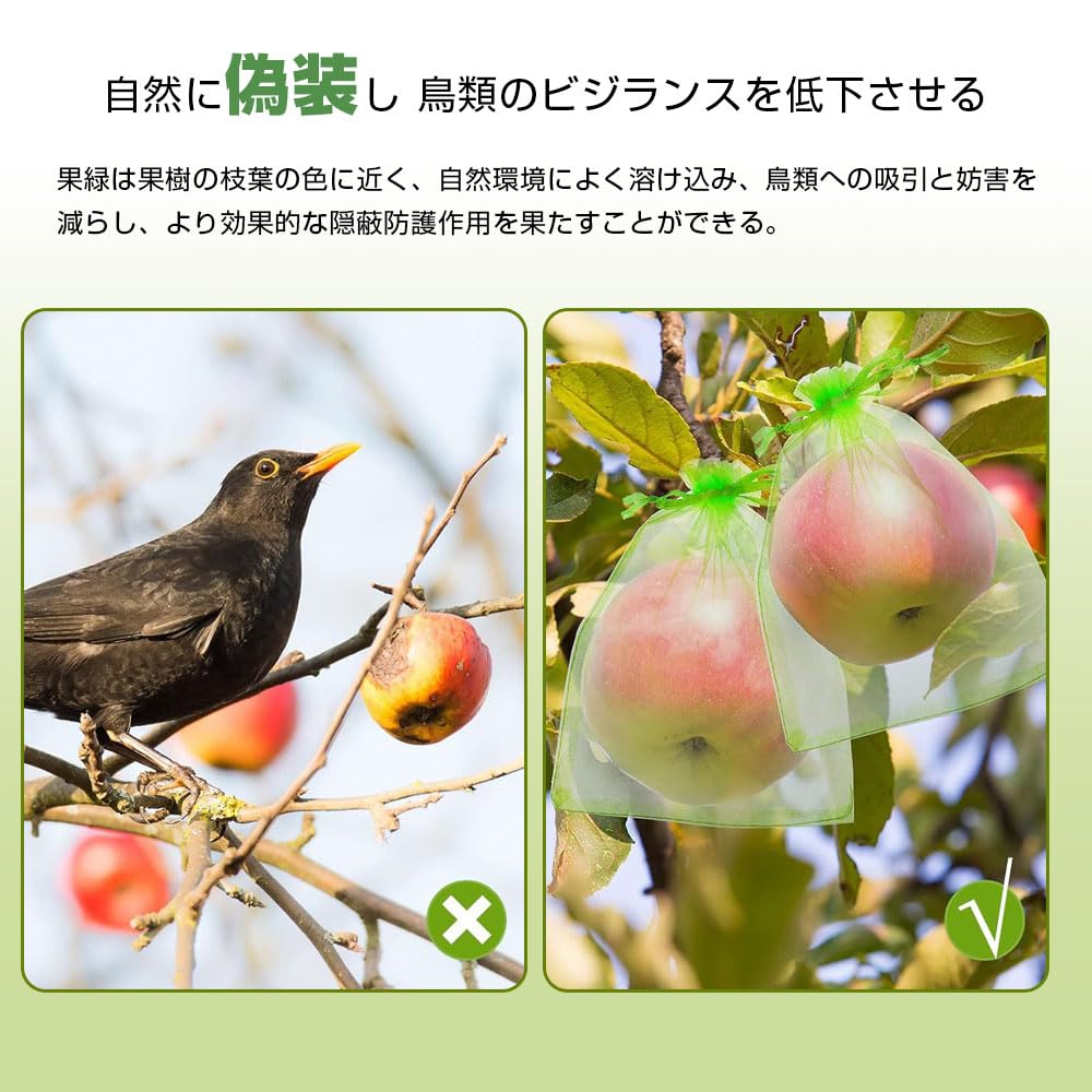 鳥や虫から果実をしっかりガード:カラスや小鳥、果実に集まる小さな虫(アリやミバエなど)からしっかり守り、収穫時まで果実を安全に保護します。