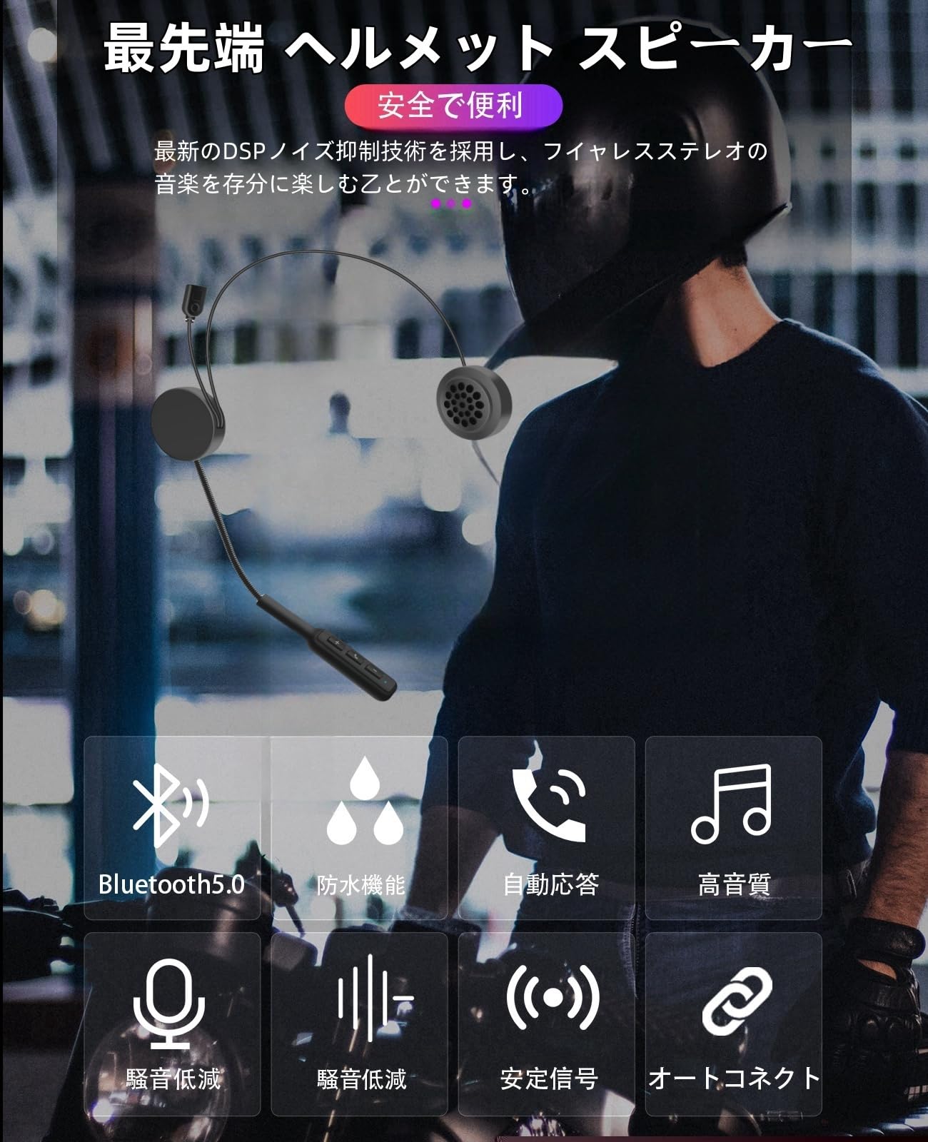 【最新型改良】 オートバイヘルメット ヘッドセット イヤホン バイク インカム インカム バイク用 スピーカー bluetooth 5.0 クリアな音質 操作簡単 取り付けが簡単 クリアな音声ナビゲーション ノイズ消減 ハンズフリー 着信自動応答 ステレオ音楽/音声制御/通話 音量調節 日本語マニュアル付き