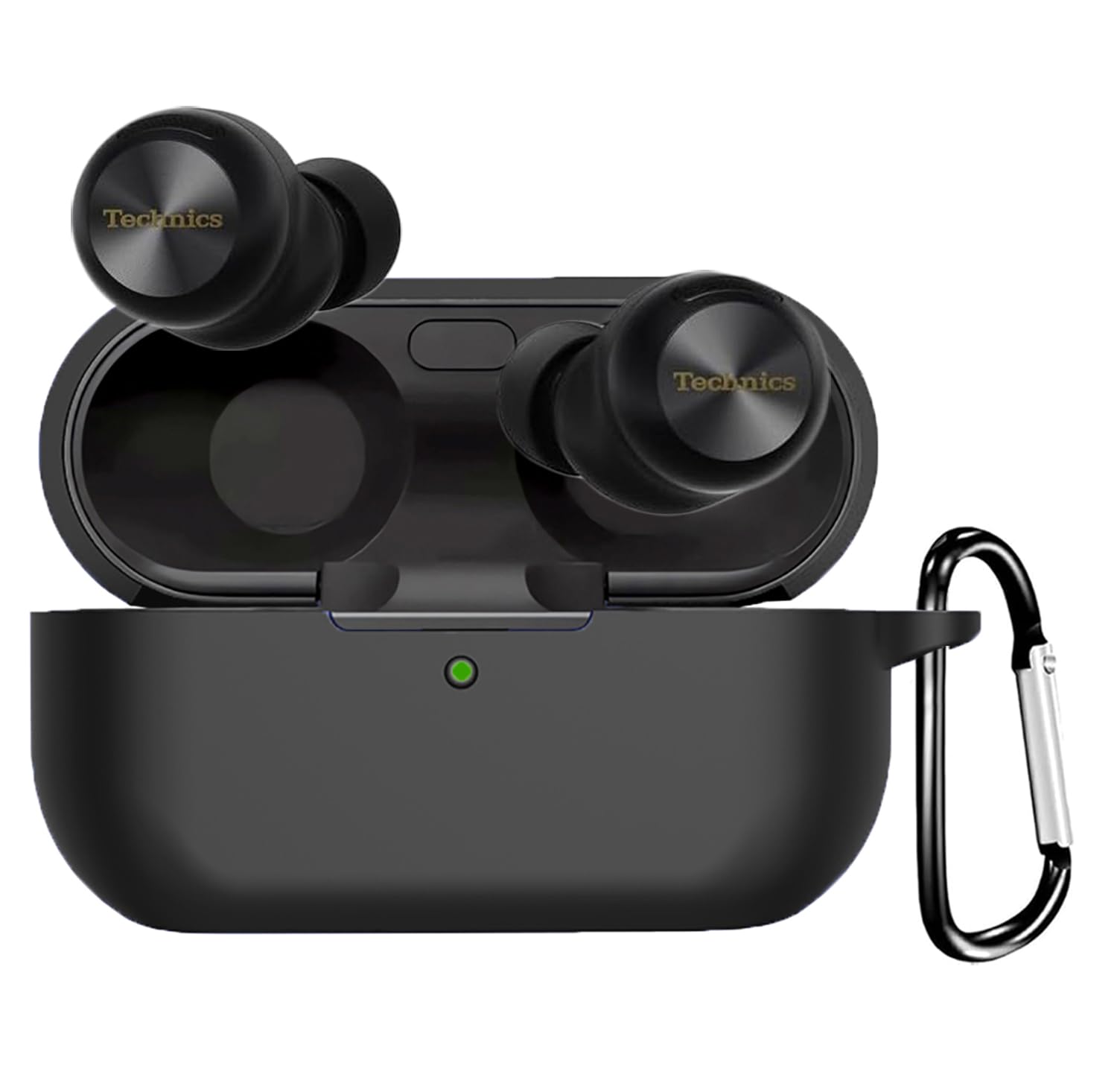 LAYJOY For Technics EAH-AZ100 用 ケース カバー シリコーンケース Technics EAH-AZ100 保護カバー 装着充電可能 全面保護 落下防止 キズ防止 耐衝撃 防塵 防水 軽量 収納 カラビナ付き (ブラック)