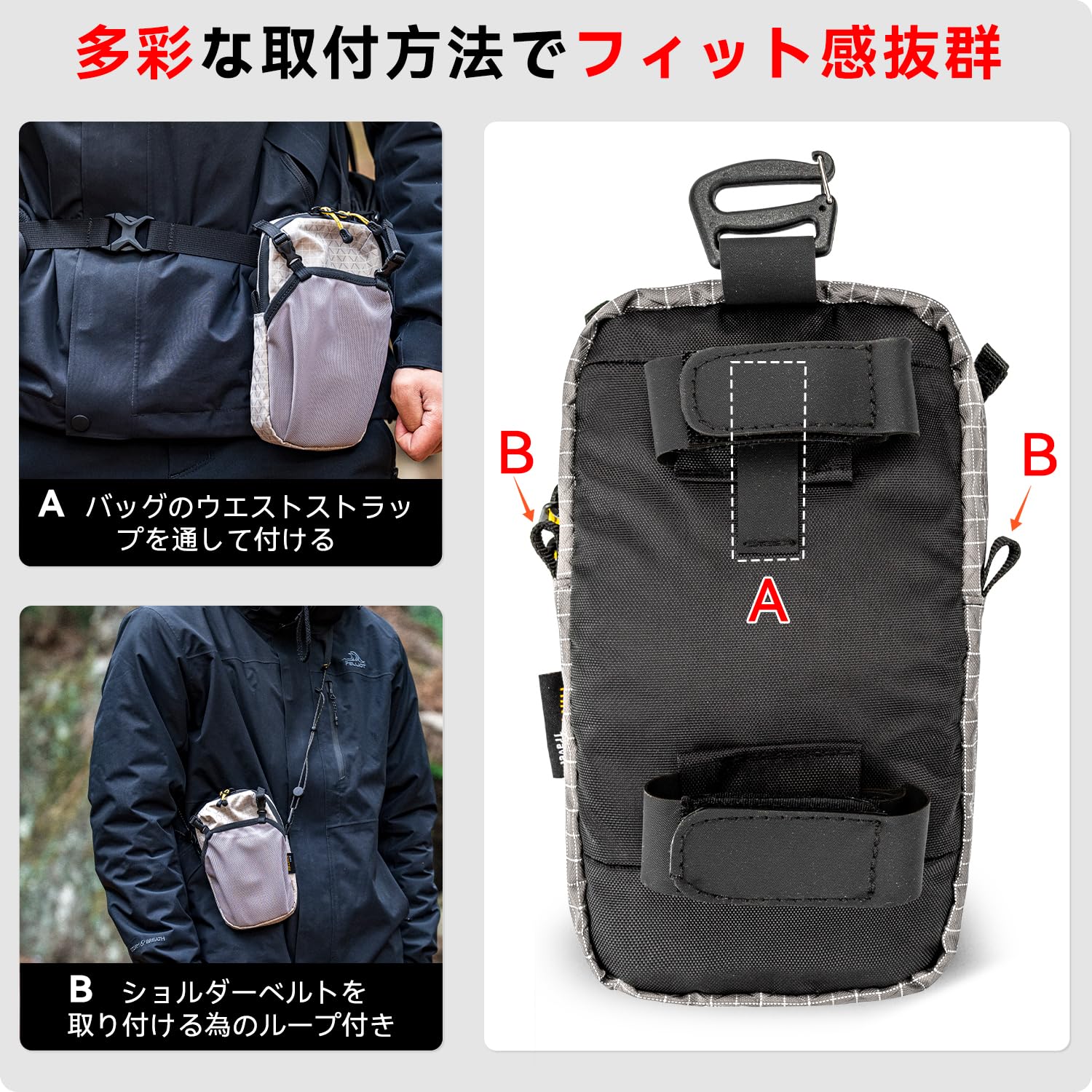 「多機能ポーチ」:財布、サングラスなどの小物入れとしてバックパックで出かける時、すぐ使う小物の取り出しが楽になる。ボルトを固定できるゴム付き、かがめた時でも落ちる心配がなく、登山やハイキングの際のボルトポーチとしても使えます。