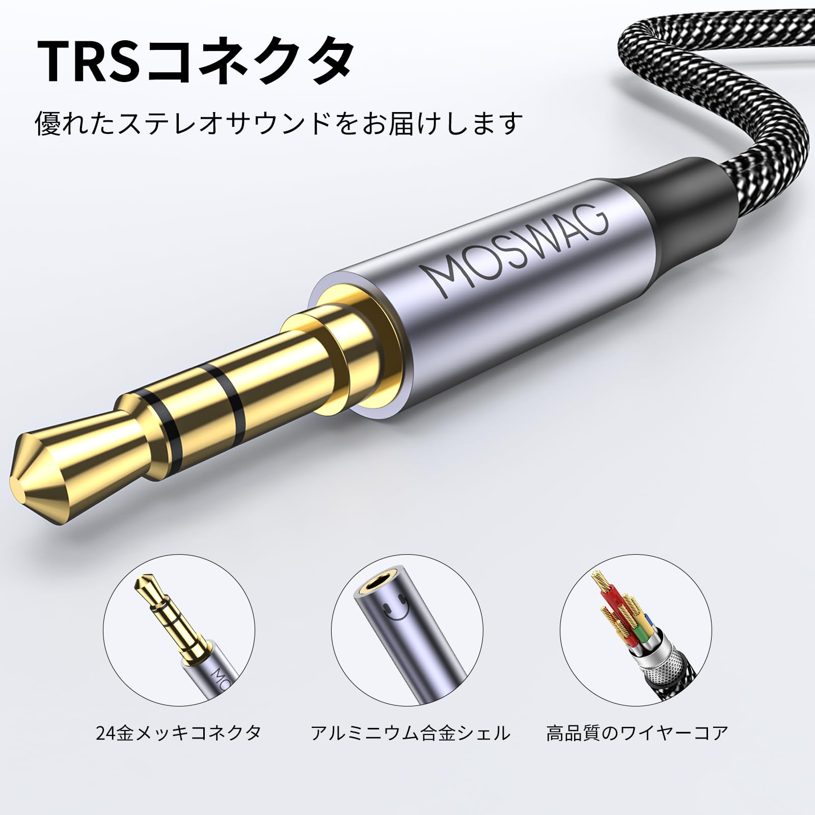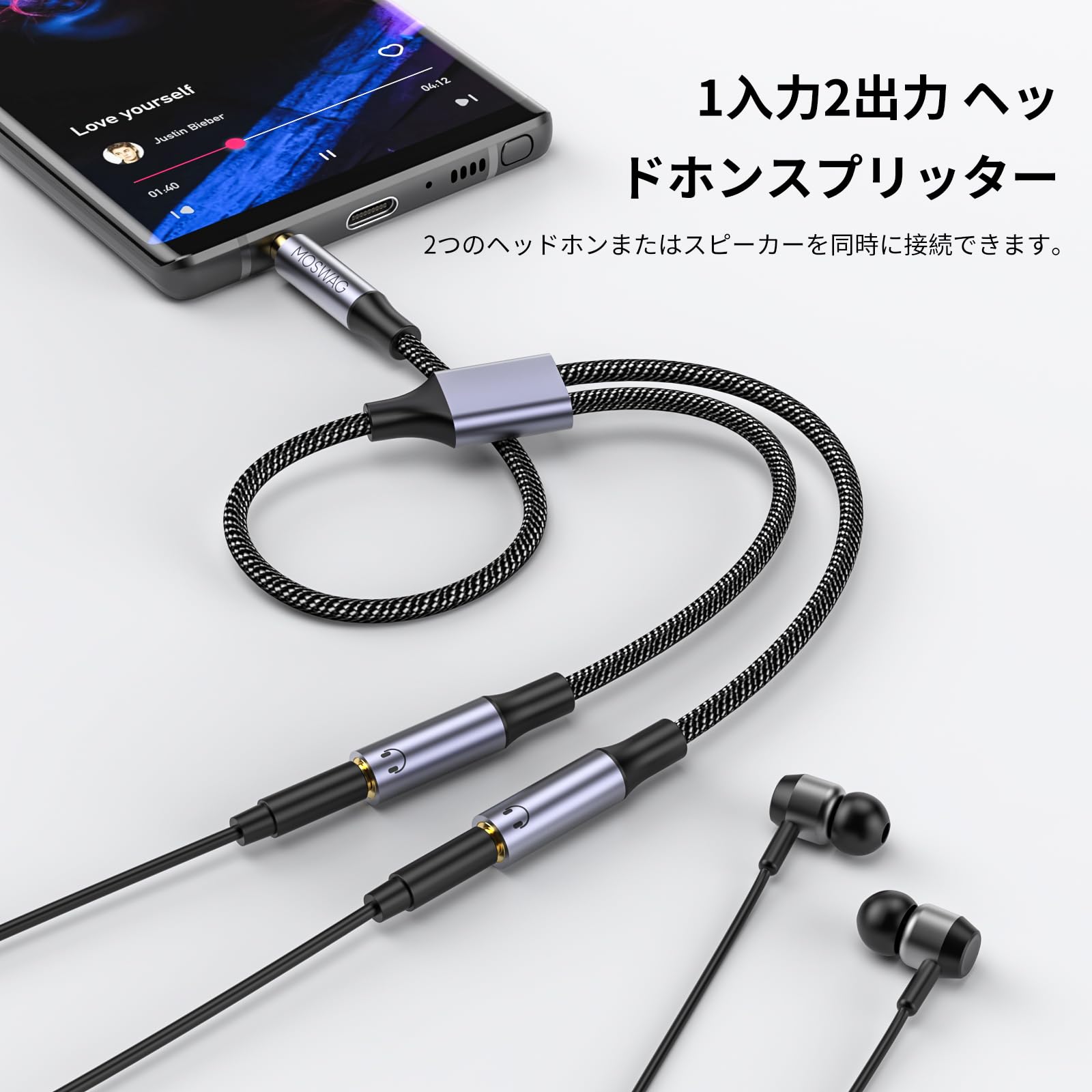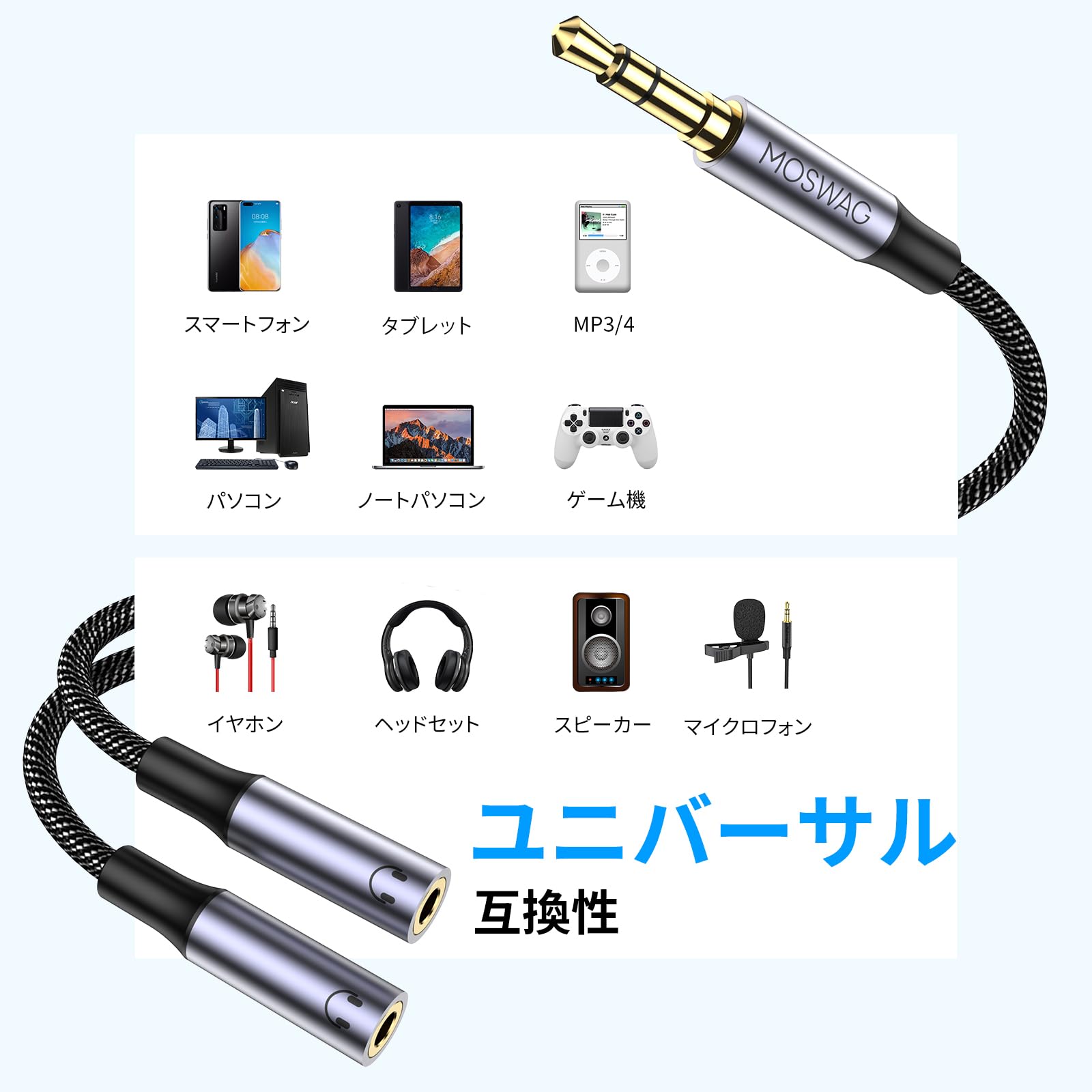 【特価商品】MOSWAG 3.5mm オーディオ分配ケーブル 3極/TRSイヤホン分岐コード 2分配ケーブル 3.5mm ヘッドホン延長ケーブ スマホ/タブレット/MP3//CD/MDに対応(25CM)
