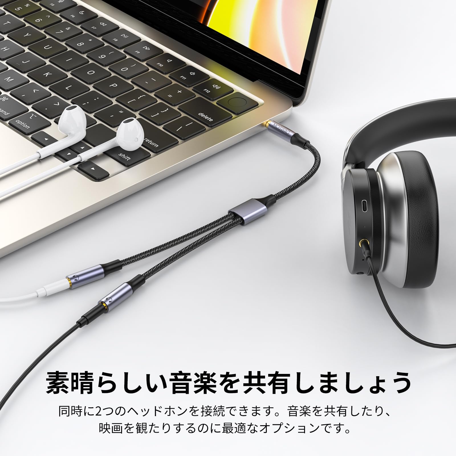 【デュアルオーディオ出力】 デュアルヘッドフォンジャックにより、2組のヘッドフォンやイヤフォンを同時に接続することができ、複数のユーザーが信号の損失や劣化なしに同じオーディオソースを楽しむことができます。