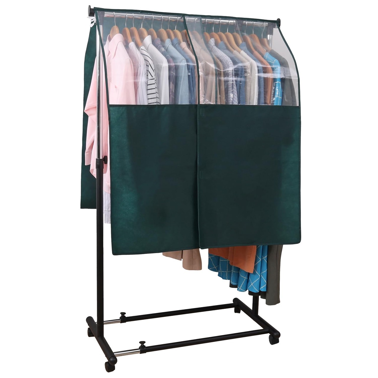 【特価セール】アストロ ハンガーラックカバー グリーン 幅90cm 通気性の良い不織布製 衣類カバー 埃除け 洋服が見える透明窓 ずり落ち防止固定用ひも付き 防塵 クローゼット 吊り下げ 613-38