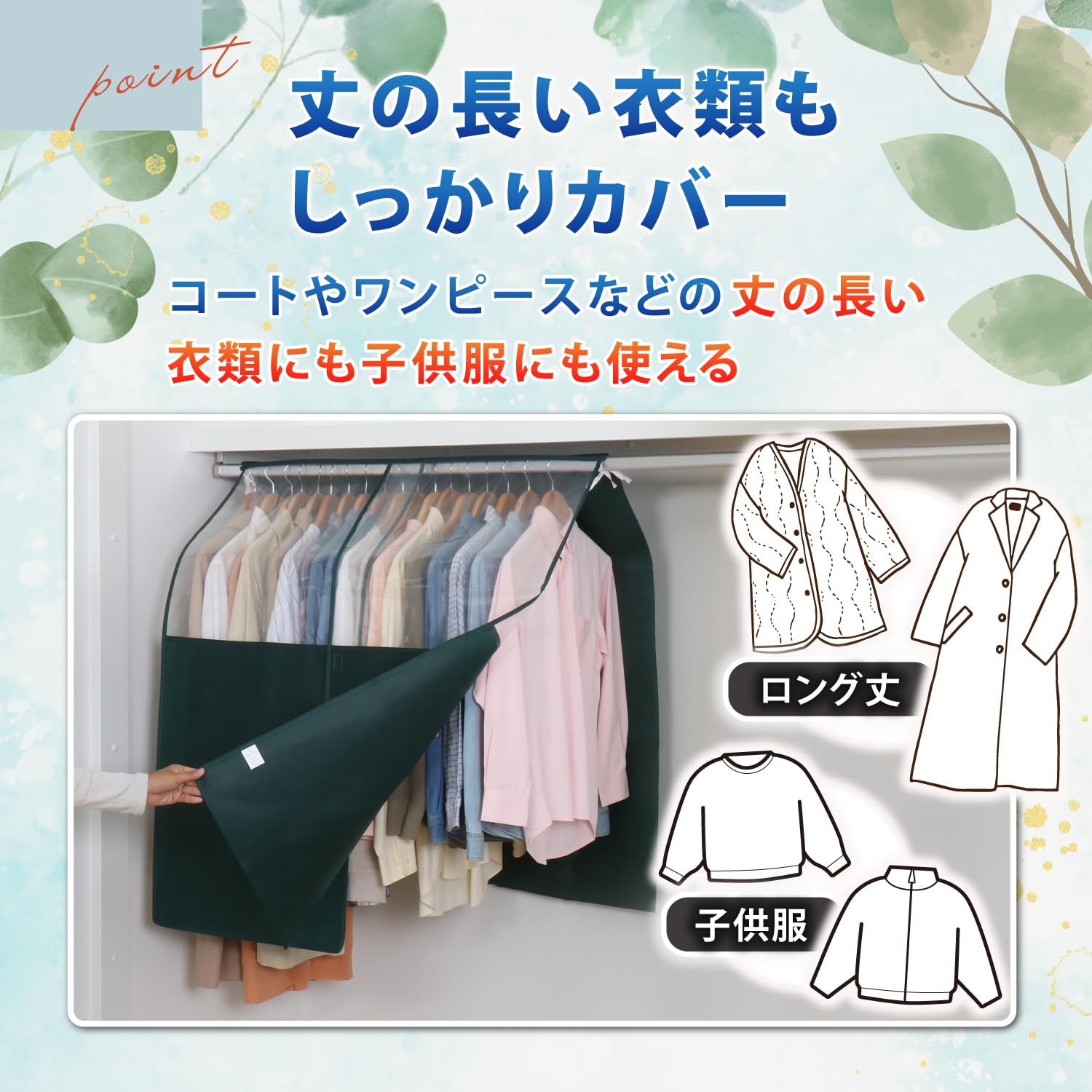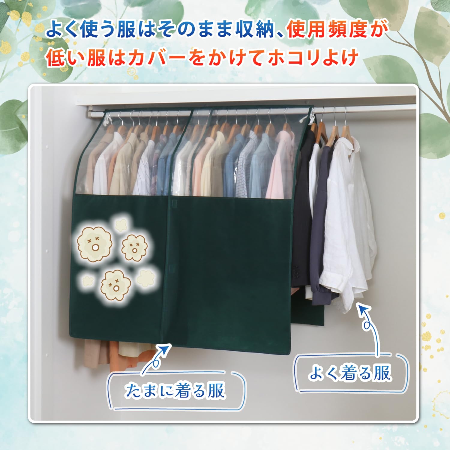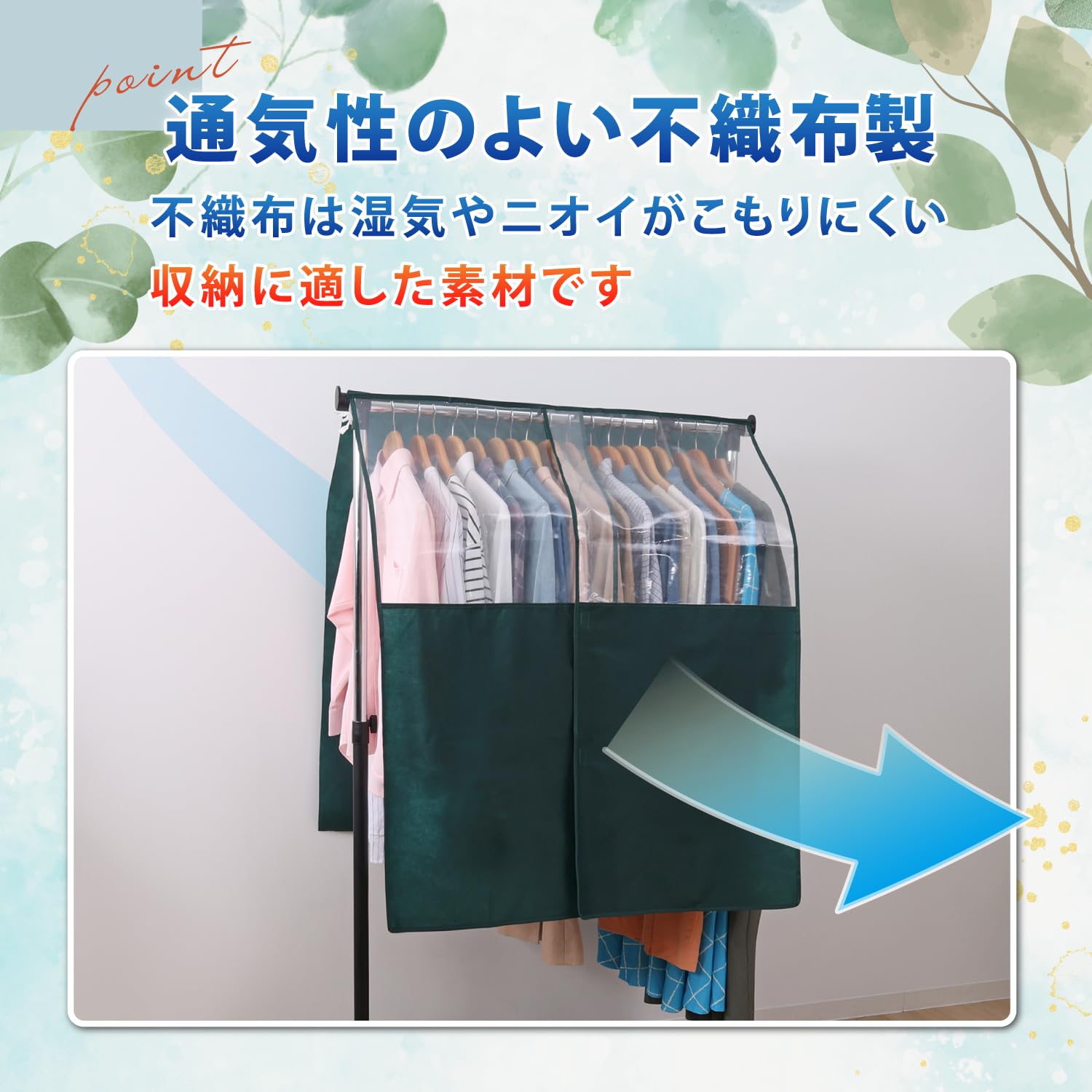 ●通気性の良い不織布でハンガーラックに掛けた衣類をホコリや汚れからガード。