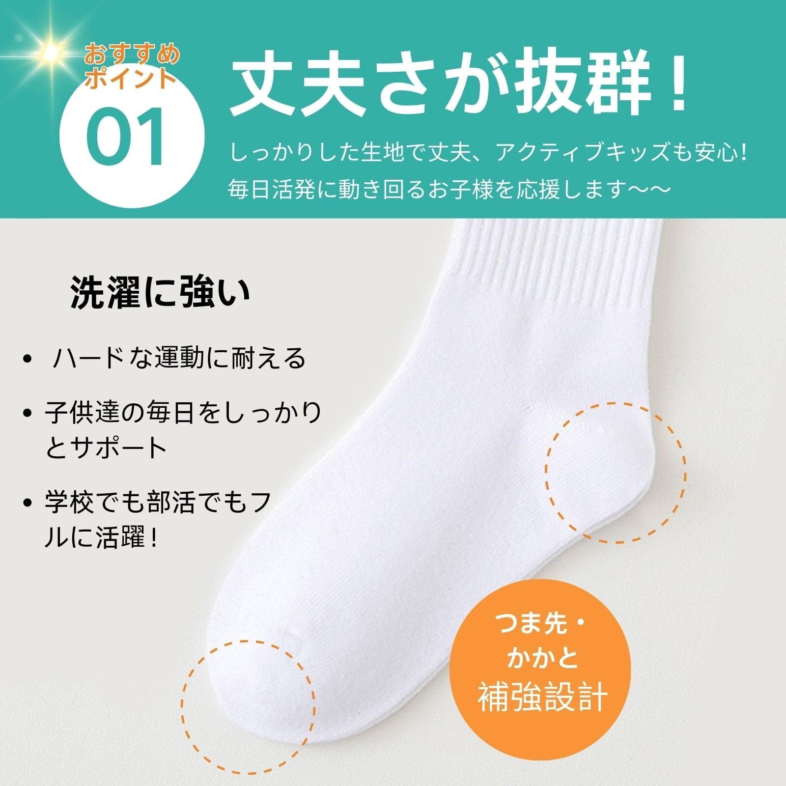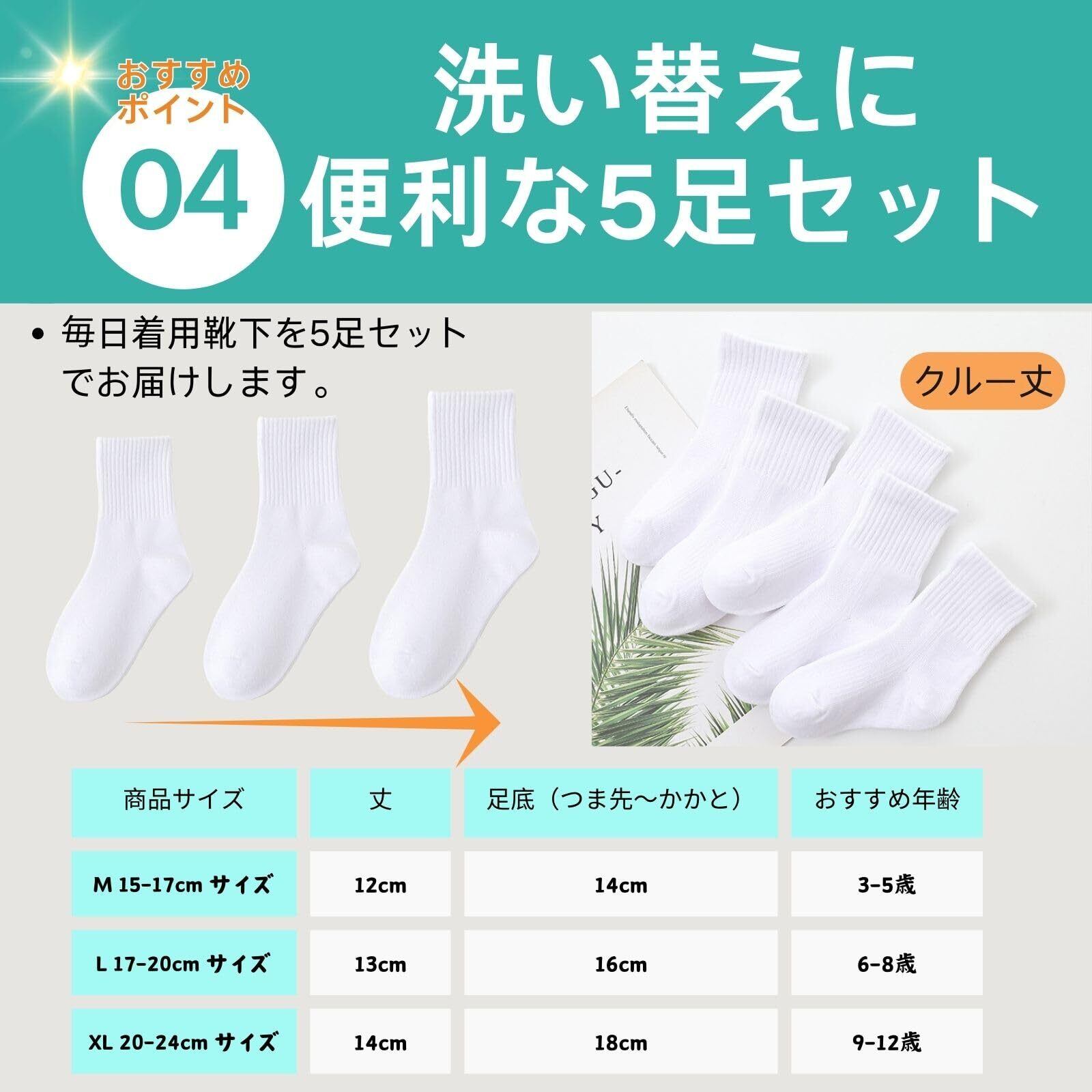 【2022最新】[konamiya] 靴下 キッズ 学校指定 スクールソックス 白 5足セット 男の子 女の子 クルー丈ソックス 白 子供用 小学生 くつした 保育園 幼稚園 小学生 通園 通学