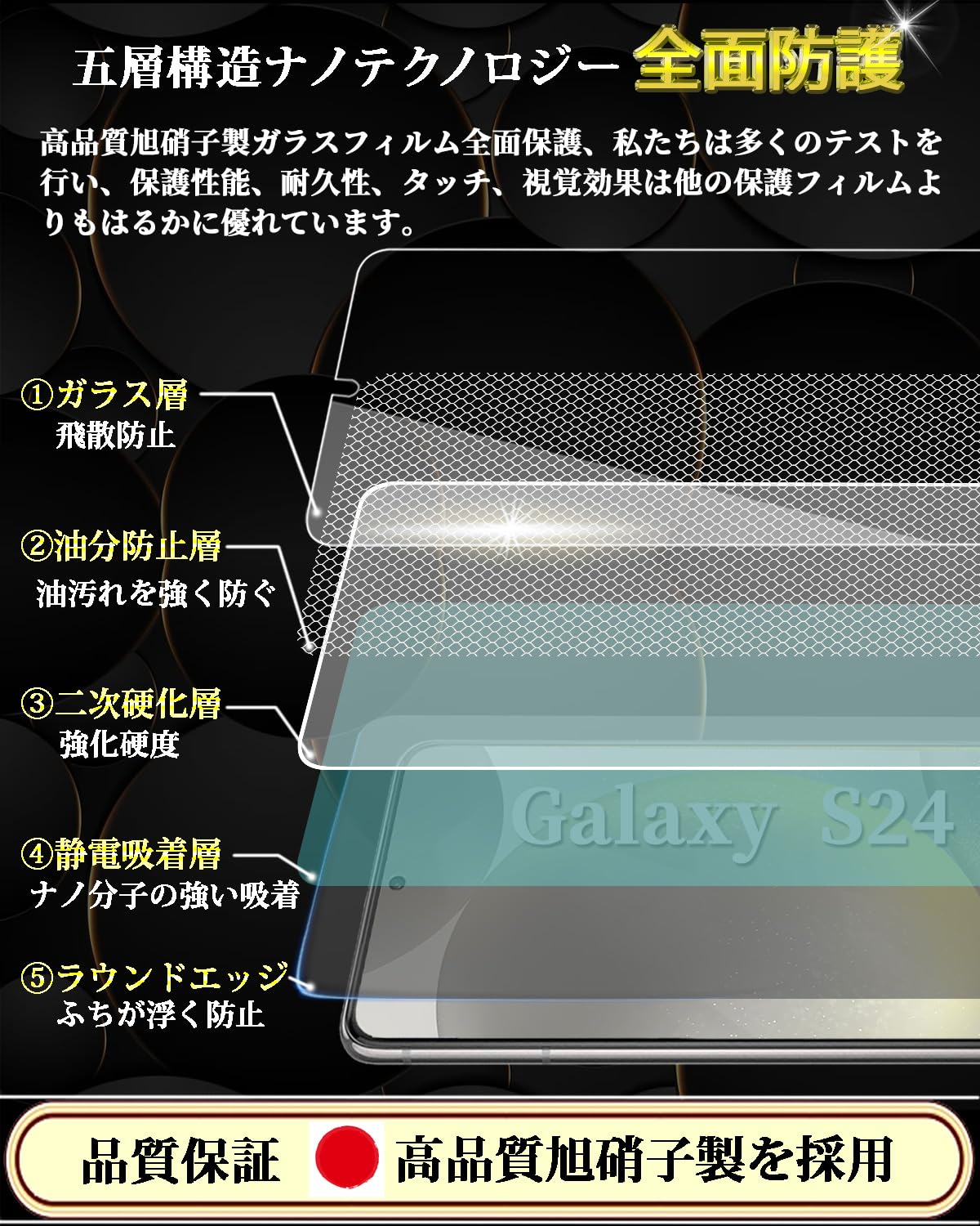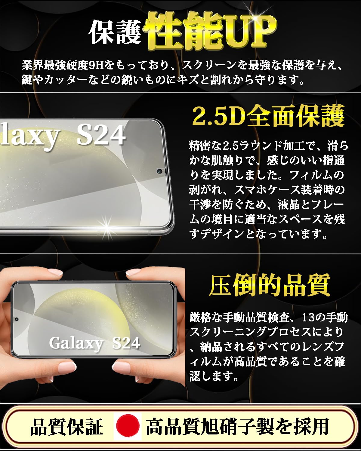 【2022最新】対応 Galaxy S24 ガラスフィルム ギャラクシー s24 強化ガラス Galaxy S24 液晶保護フィルム【2枚入り】0.18mm 日本製素材旭硝子製 硬度9H 貼り付け簡単 高透過率 気泡ゼロ 飛散防止 耐衝撃 指紋防止 スクラッチ防止
