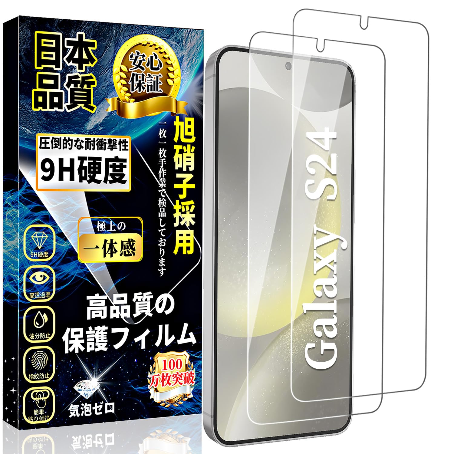 対応 Galaxy S24 ガラスフィルム ギャラクシー s24 強化ガラス Galaxy S24 液晶保護フィルム【2枚入り】0.18mm 日本製素材旭硝子製 硬度9H 貼り付け簡単 高透過率 気泡ゼロ 飛散防止 耐衝撃 指紋防止 スクラッチ防止