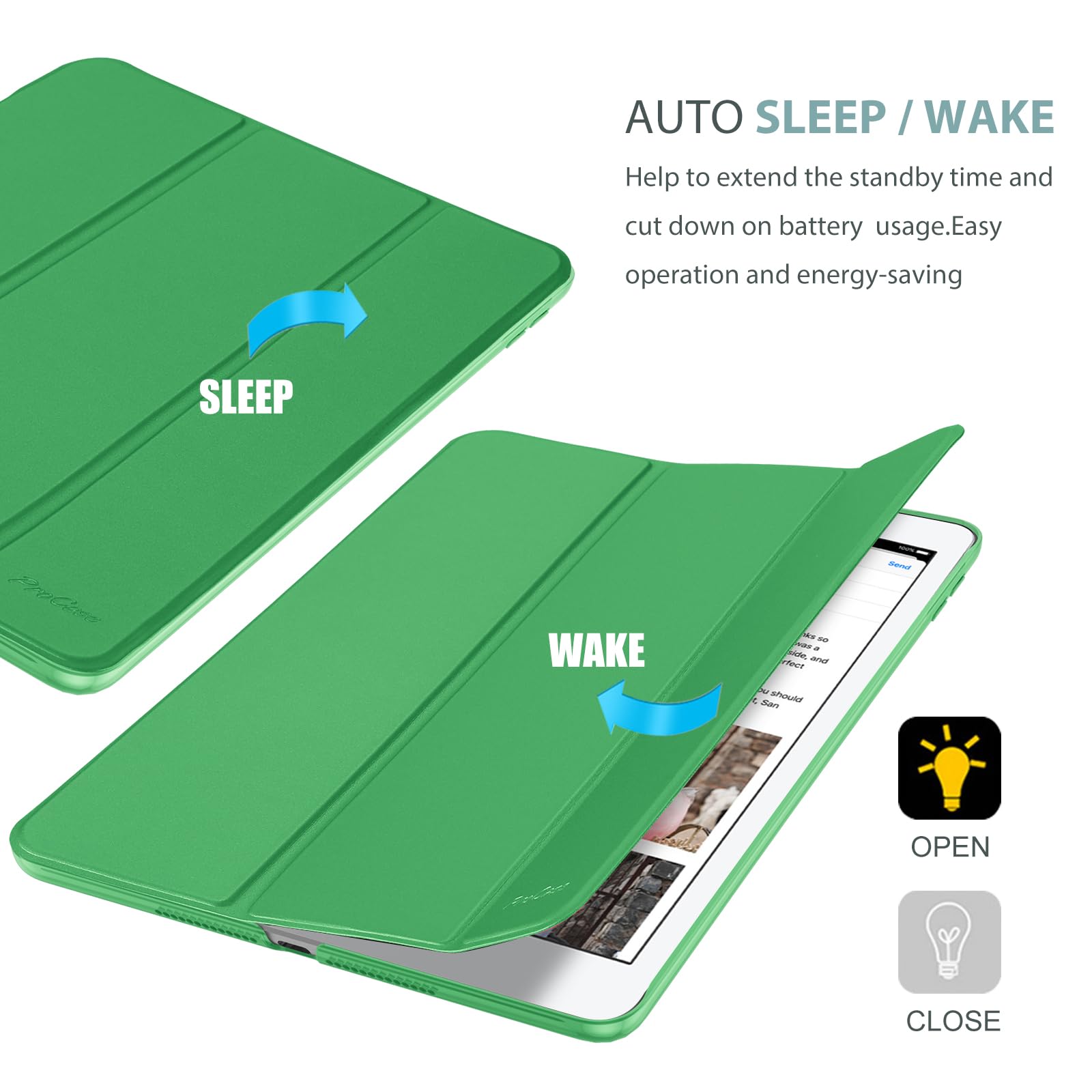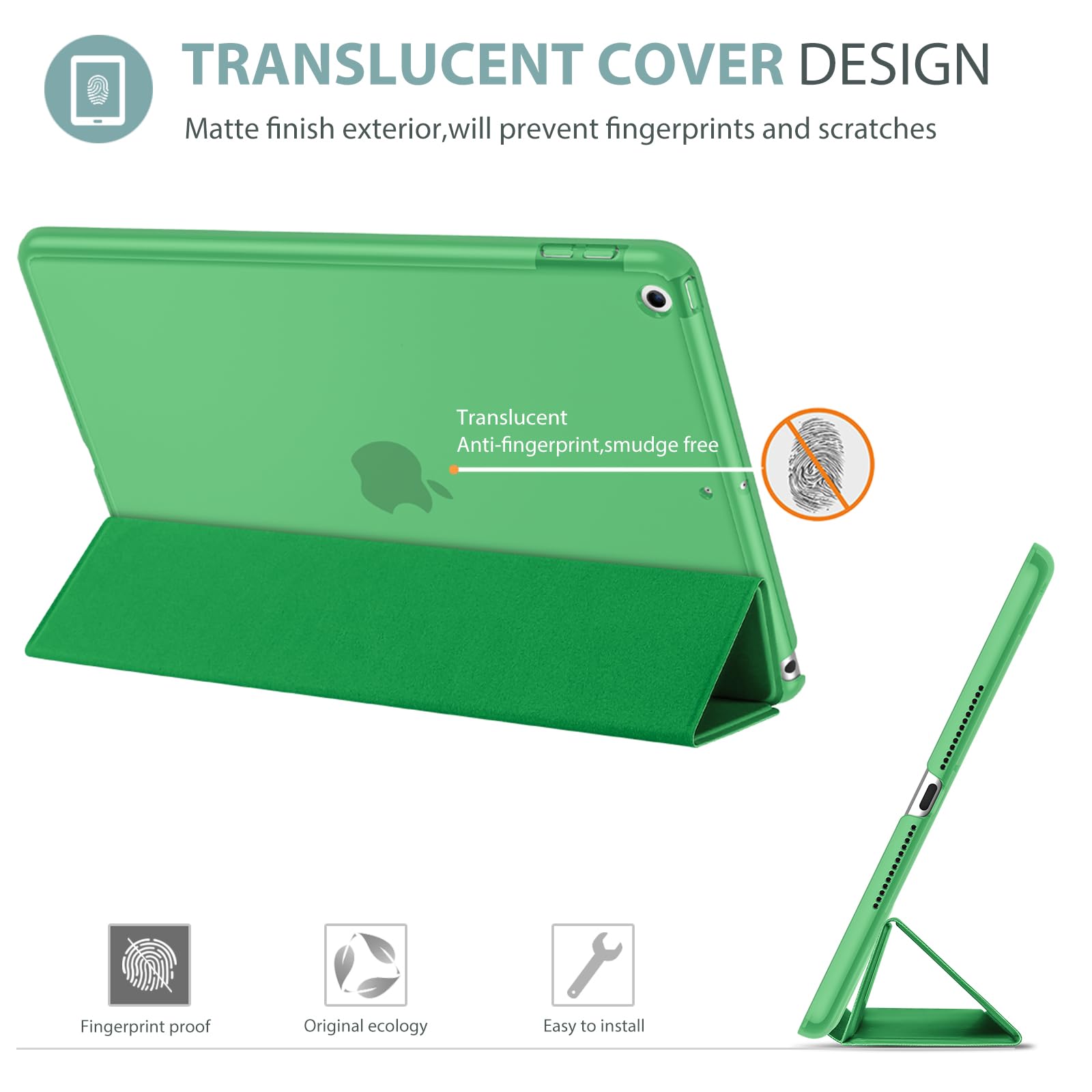 ProCase iPad 9.7(旧型)ケース スマート 超スリム スタンド フォリオ保護ケース 半透明フロスト バックカバー 対応機種:iPad 9.7 第6世代 2018 / 第5世代 2017 - グリーン